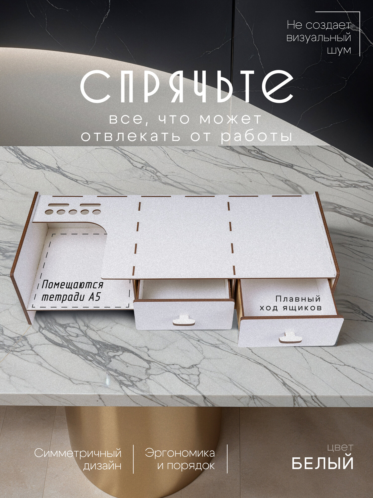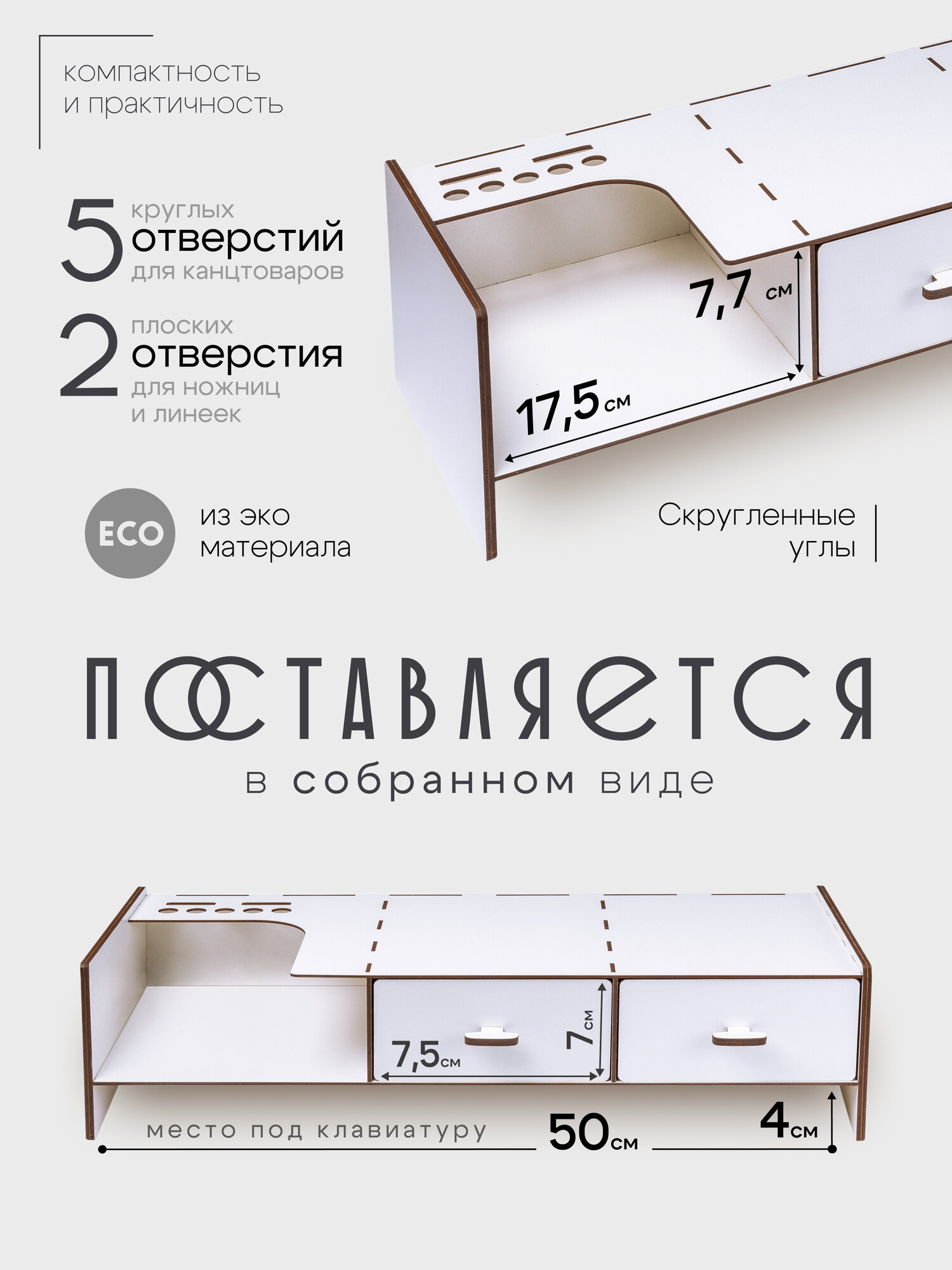 Наша подставка под монитор компьютера не только обеспечивает оптимальную высоту экрана для комфортной работы, но и предлагает удобное хранение благодаря встроенным ящикам.