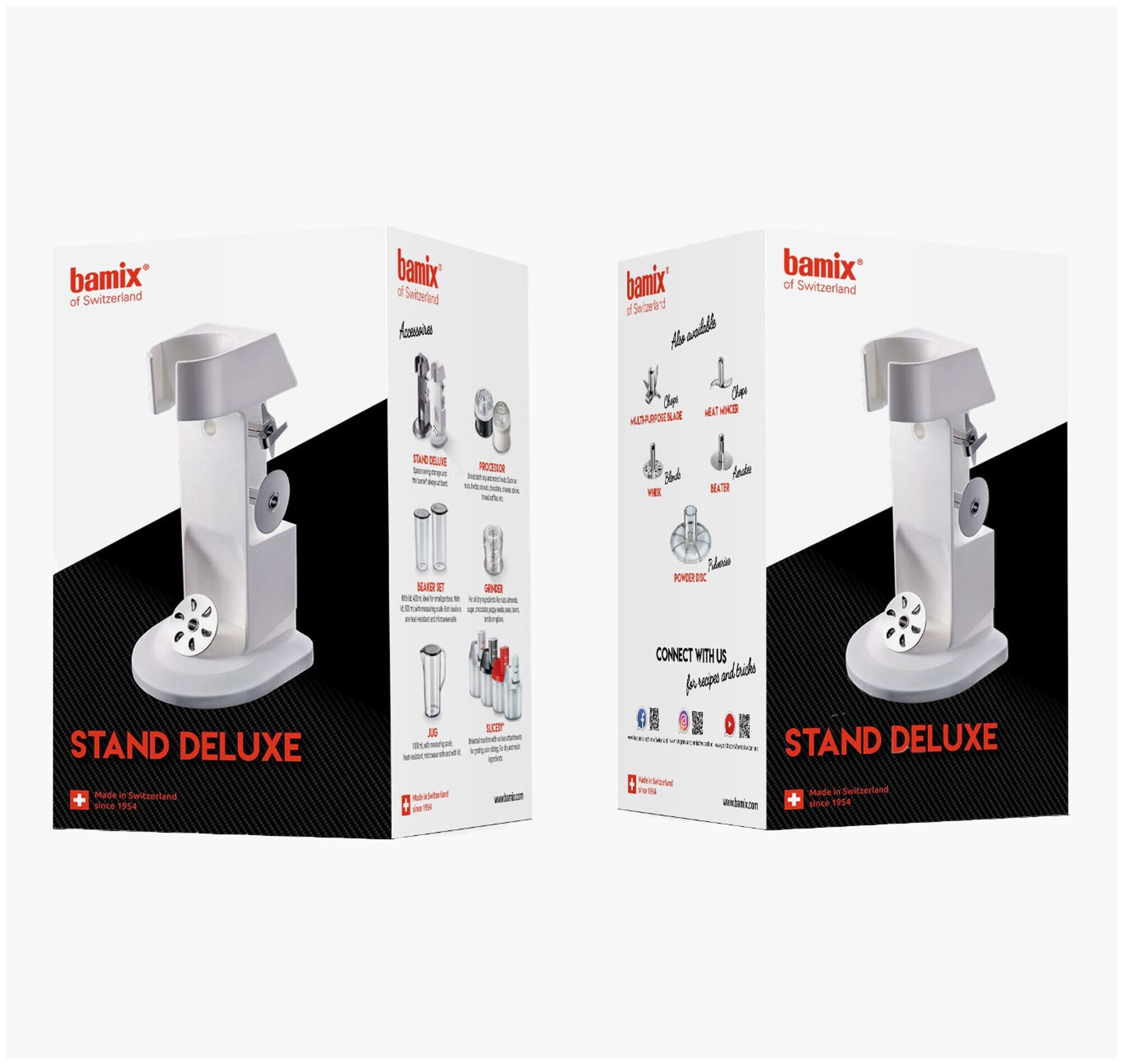 Подставка Bamix® DeLuxe предлагает идеальное место для хранения вашего блендера Bamix®, включая многочисленные аксессуары.