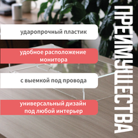 Купить Подставка под монитор на стол, 500х235х85 мм, оргстекло 5 мм, прозрачная с доставкой по всей России. Подставка под монитор на стол, 500х235х85 мм, оргстекло 5 мм, прозрачная: сравнение цен, характеристики, фото, актуальное наличие и цены.