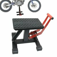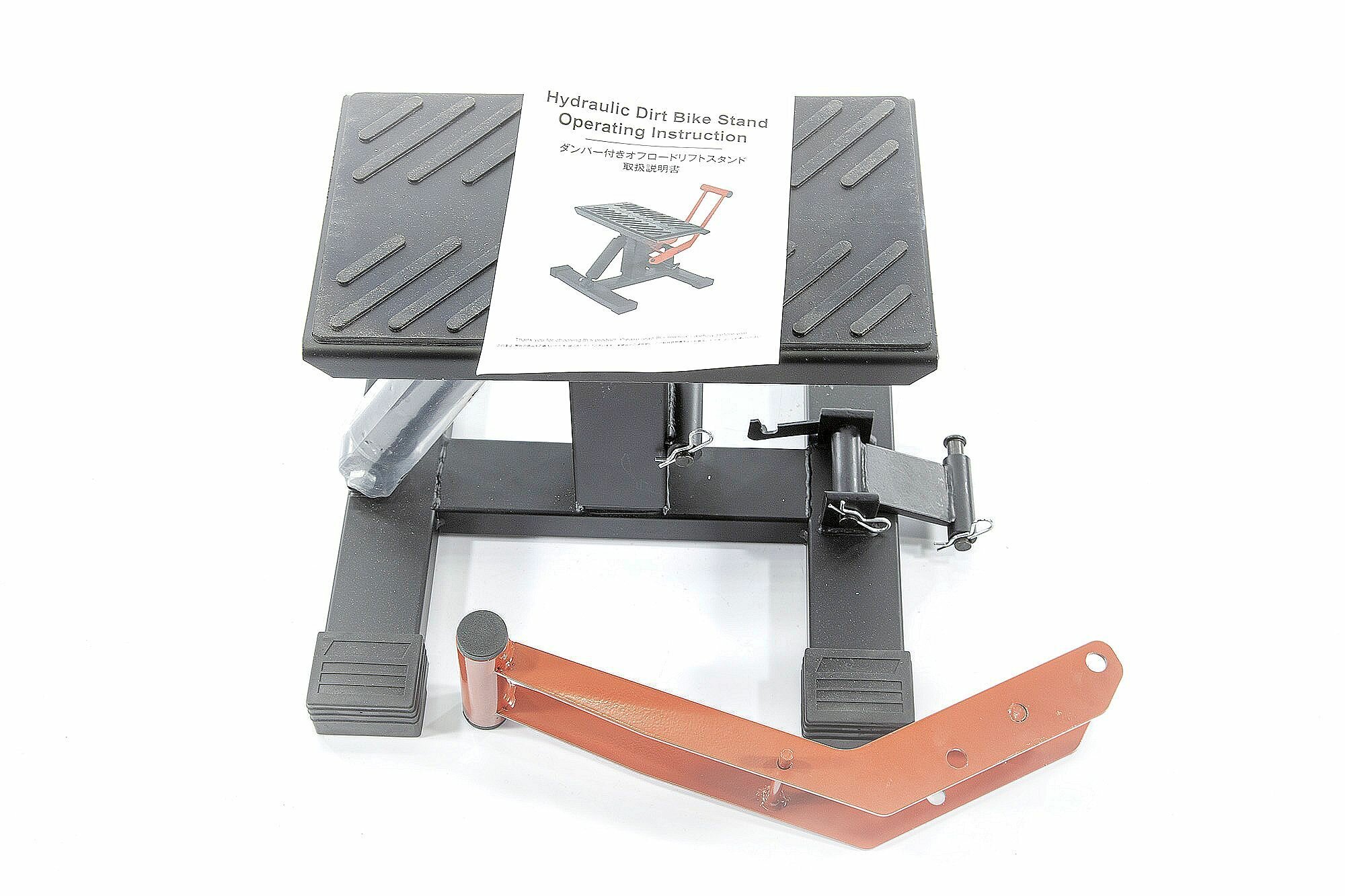 Подставка-подъемник для кроссовых мотоциклов, эндуро, питбайков, изготовленный из коррозионной-стойкой высокопрочной стали эмалевым покрытием, обеспечивает надежную грузоподъемность. Этот прочный домкрат, созданный для защиты от царапин и поддержания рабочих характеристик, станет вашим идеальным помощником при обслуживании автомобилей. Этот домкрат усовершенствованными гидравлическими демпферами позволяет легко и быстро поднимать мотоцикл, экономя время и усилия. Домкрат оснащен интегрированной планкой безопасности, которая обеспечивает отсутствие случайного спуска, что делает его более безопасным и надежно фиксирует подъемник на месте при поднятии для большей устойчивости. Противоскользящая поверхность обеспечивают безопасную и стабильную рабочую среду.