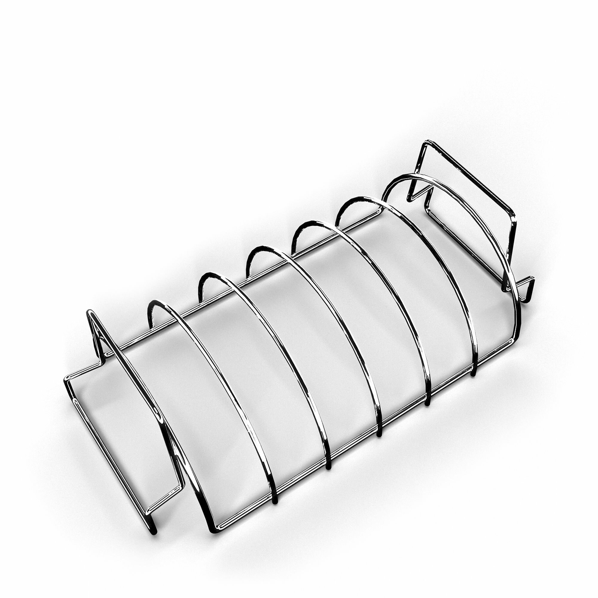 Подставка для ребрышек два-в-одном. Удобнейший аксессуар, особенно для любителей ростбифа, ребрышек барбекю и крупных кусков мяса. Толстые прутья из нержавеющей стали и крепкая конструкция делают этот аксессуар долговечным и неприхотливым. Почему 2 в 1? На одной стороне этой подставки можно готовить одновременно до 5 пластин рёбрышек, а если перевернуть её - ростбиф или курицу целиком, которые будут слегка приподняты над решёткой гриля. Эта подставка разработана в 800 Degrees и поэтому учитывает множество нюансов, которых не хватает аналогам: более удобную посадку пластин рёбрышек, компактный размер для использования во всех типах грилей: сферических угольных грилей диаметром 57 см или более, коптилен диаметром 47 см или более, всех больших газовых грилей (моделей Spirit и более крупных), пеллетных грилей, духовок глубиной от 38 см и более.