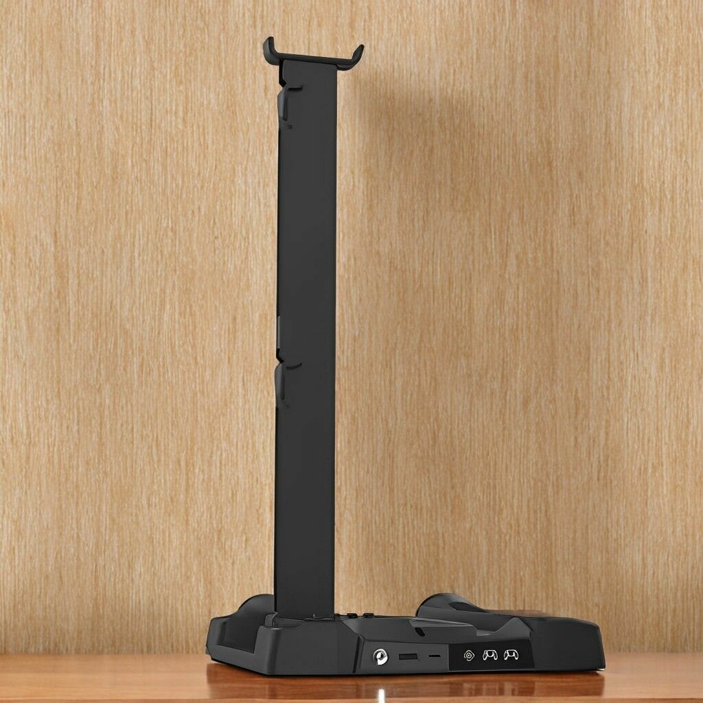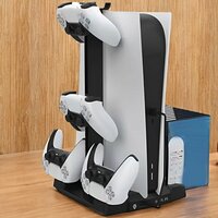 Одной из основных преимуществ этой вертикальной подставки является система активного охлаждения. Игровые консоли, особенно такие мощные, как PS5, могут сильно нагреваться при интенсивном использовании. Подставка оснащена встроенными вентиляторами, которые эффективно отводит тепло, поддерживая оптимальную температуру консоли. Это не только предотвращает перегрев, но и способствует увеличению срока службы вашего устройства, позволяя вам сосредоточиться на игре, не беспокоясь о его состоянии. Так же снабдена дополнительной вертикальной стойкой с 2-мя универсальными отделениями. (можно хранить контроллеры или VR2 или Pulse 3D)