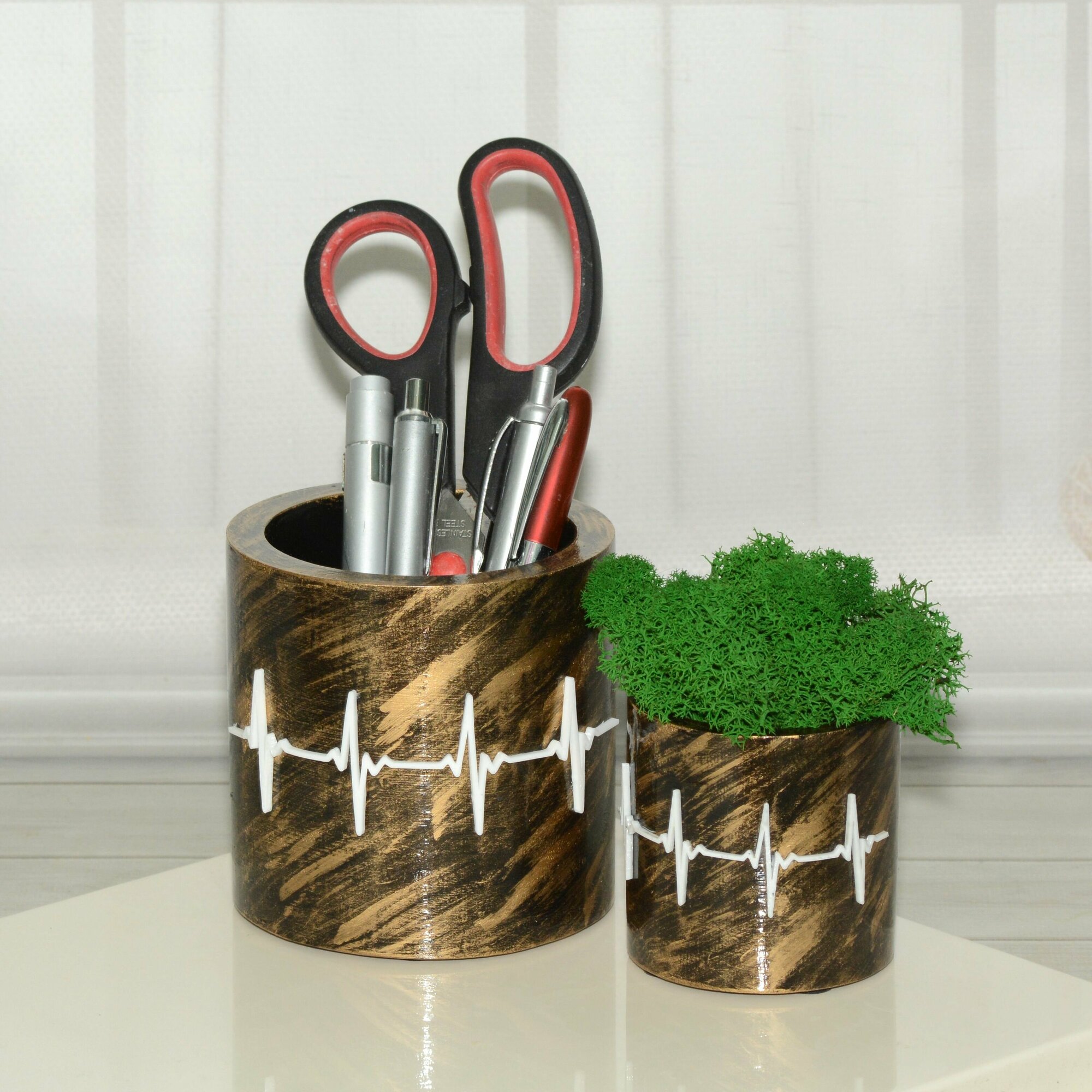 Подставка с ЭКГ для ручек, карандашей // Размер L и M // Цвет черное золото: сравнение цен, характеристики, фото, актуальное наличие и цены.
