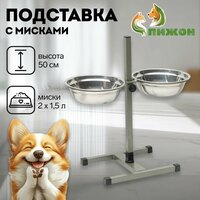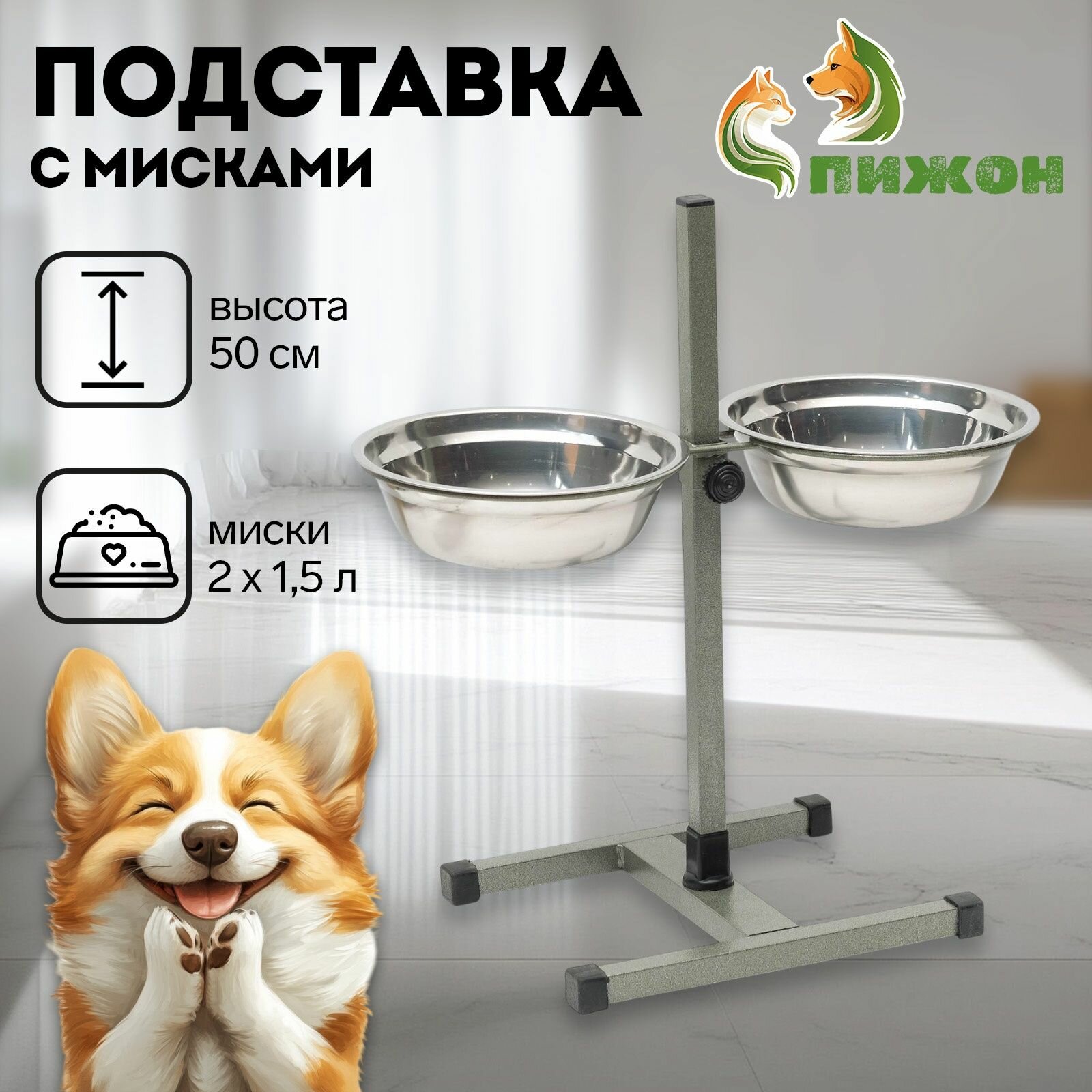 Подставка с мисками Пижон 2х1,5 л, высота 50 см, разборная, серо-зеленая шагрень
