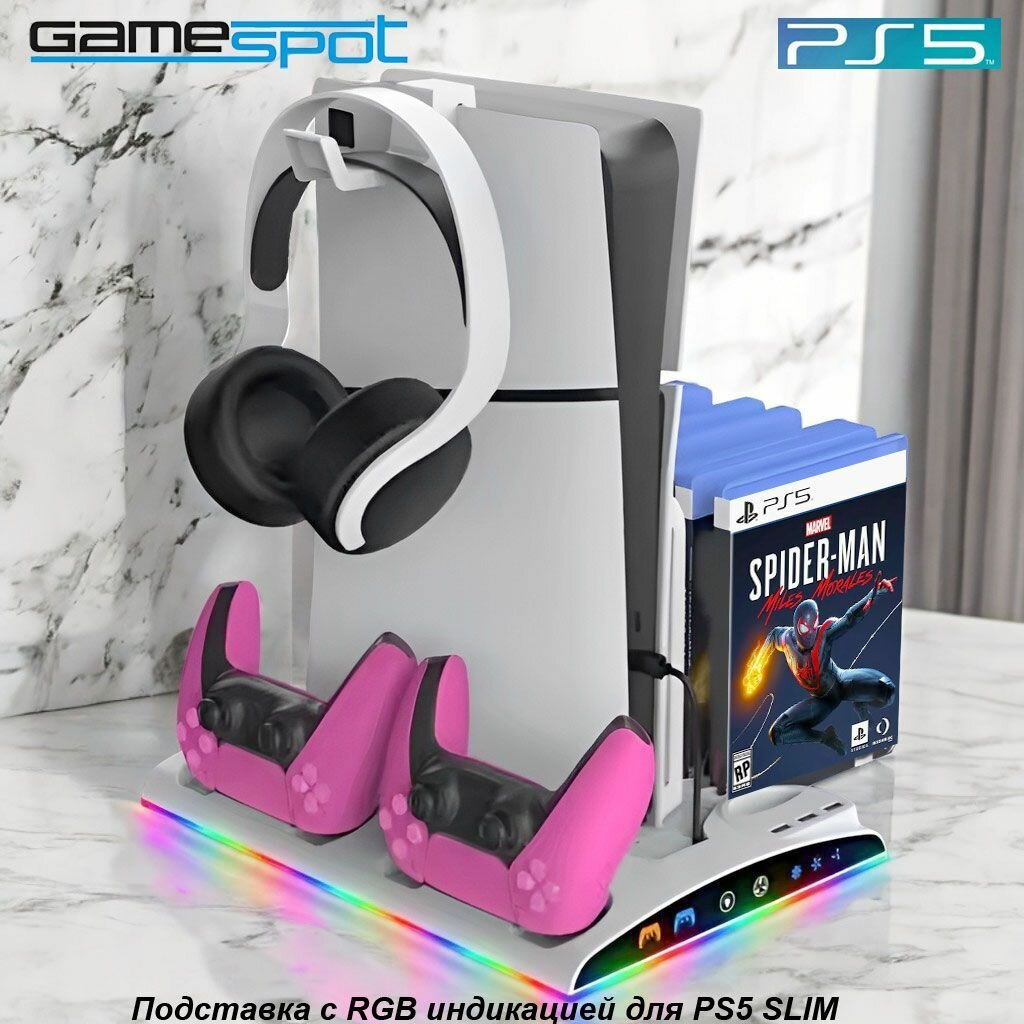 Купить Подставка с RGB индикацией 3-мя USB для консоли PS5 SLIM с зарядкой геймпадов DualSense 0331 с доставкой по всей России.