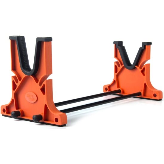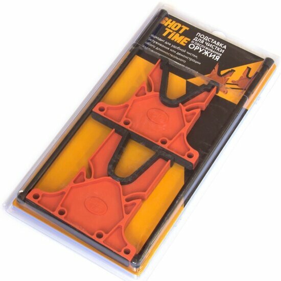 Подставка ShotTime для чистки и обслуживания оружия, разборная, регулируемаяПодставка ShotTime подходит для удобной чистки, обслуживания или демонстрации любого спортивного, пневматического и охотничьего длинноствольного оружия. Подставка оборудована прорезиненными стойками, благодаря которым любое длинноствольное оружие будет надёжно размещено. На обеих сторонах стоек есть выемки для шомпола любого размера. Подставку можно быстро собрать без всяких инструментов и настроить на необходимую длину. Она также легко разбирается и может компактно транспортироваться в переносном ящике для чистки оружия. Разная высота стоек позволяет разместить оружие горизонтально или стволом вниз. Горизонтальное положение используется для обслуживания и установки прицела, а положение стволом вниз — для более удобной чистки. Две и более подставки могут быть соединены между собой, образуя одну большую подставку. Подходит для: Чистки оружия Установки прицела Обслуживания Демонстрации оружия Особенности подставки ShotTime для чистки оружия: Имеет две прорезиненные стойки, которые позволяют удерживать оружие любой длины за счёт скольжения по двум направляющим Материал стоек устойчив к агрессивным средам — маслам, различным сольвентам (растворители омеднения, освинцовки, порохового нагара) и другим техническим жидкостям, предназначенным для ухода за оружием Длина направляющих: 400мм Ширина стоек, удерживаюших оружие: 175мм Длина подставки быстро настраивается под длину оружия В случае транспортировки легко раскладывается и помещается в сумку Подставку можно взять с собой на стрельбище для оперативной чистки