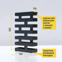 Эта подставка выполнена из качественной стали, что обеспечивает долговечность и надежность использования. Прямоугольная форма является не только стильной, но и функциональной – она легко поместится в углу или вдоль стены, не занимая много места и оставаясь незаметной. Черный цвет подставки универсален и прекрасно сочетается с любым интерьером.