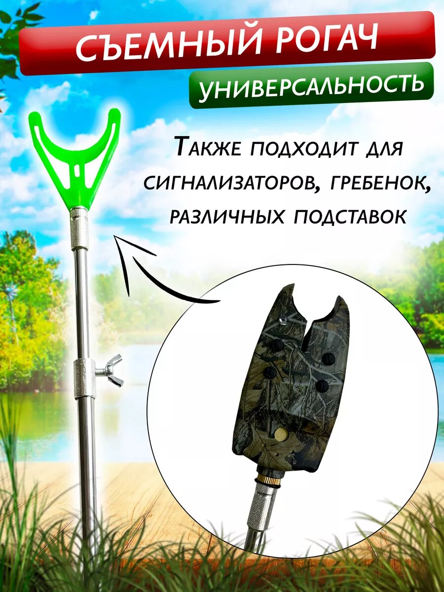 Преимущества: — Универсальная: подходит для всех типов удочек — Прочная: нержавеющая сталь + ABS — Регулируемая длина и угол наклона — Компактная и лёгкая — удобно брать с собой — Устойчива даже на каменистом берегу — Быстрая установка — В комплекте сигнализатор