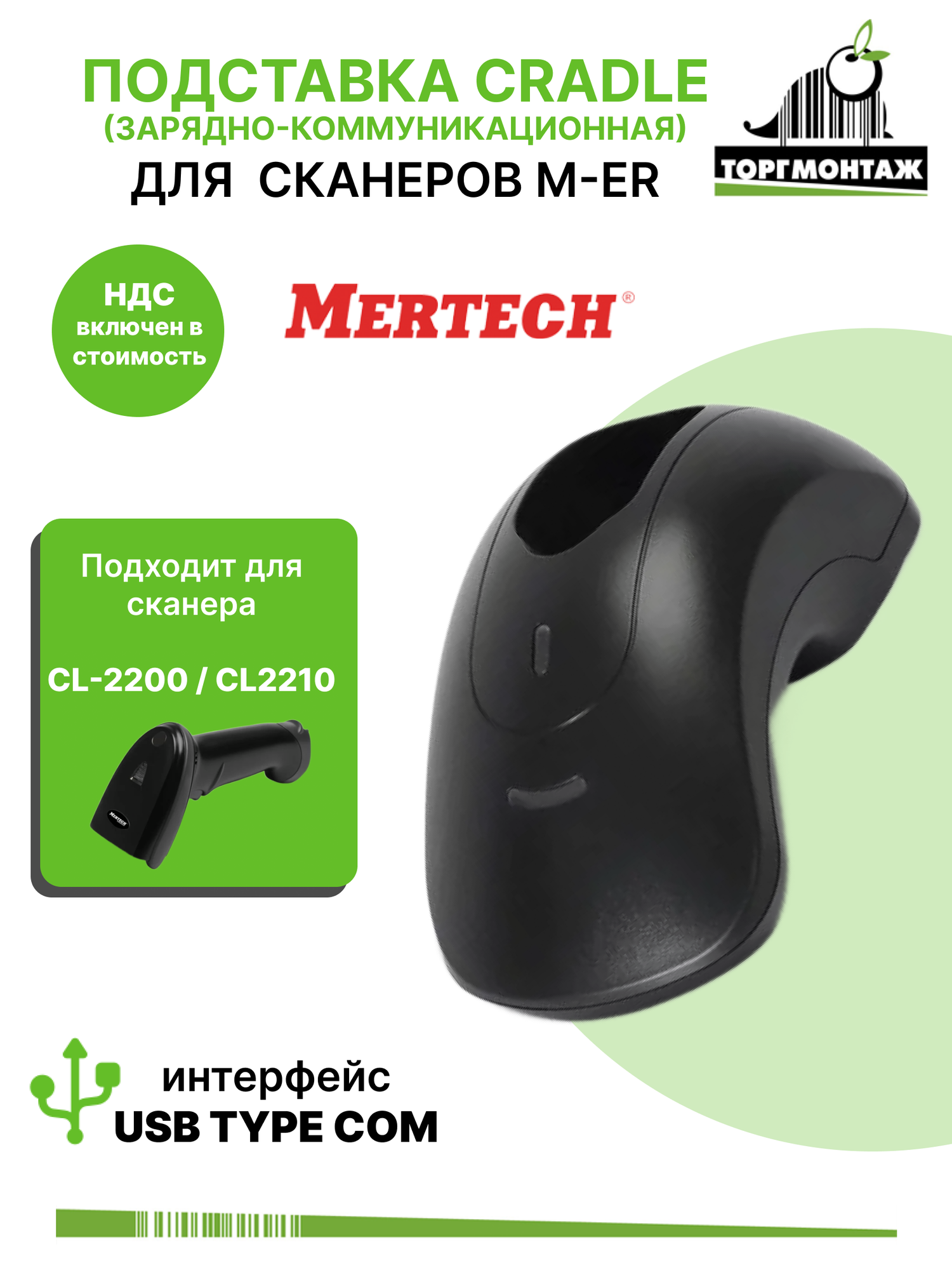 Купить Подставка зарядно-коммуникационная (Cradle) MERTECH для сканера CL-2200/2210 с доставкой по всей России.