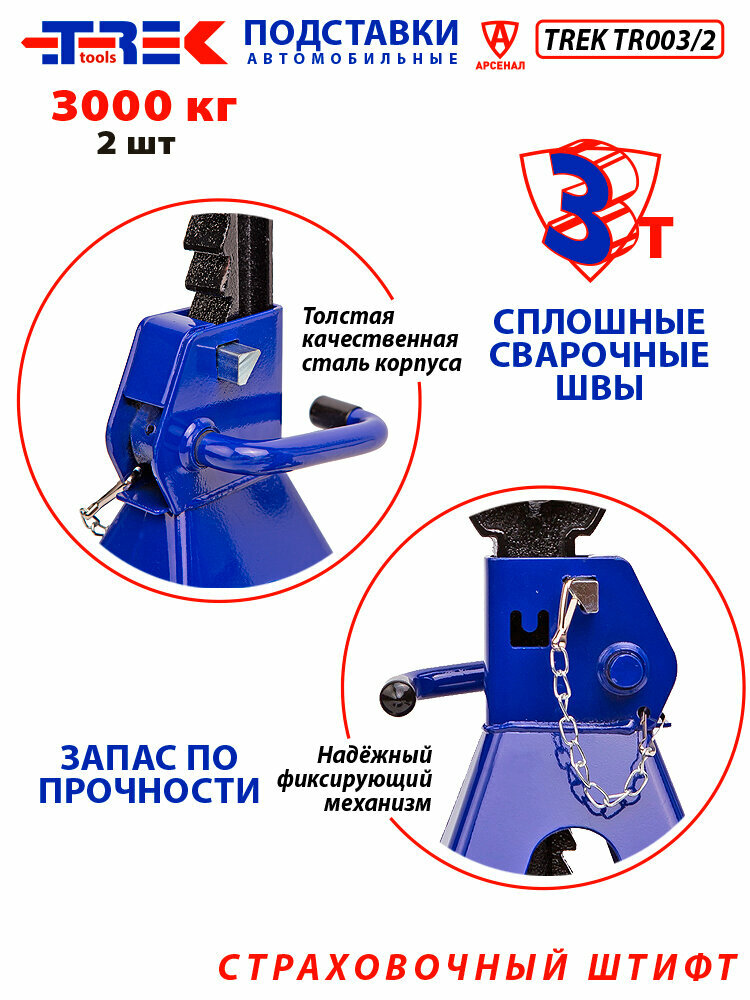 Купить Подставки страховочные под машину 3 т. (2 шт) h 290-428 мм, +НАКЛАДКИ и фиксаторы, (стойка, опора, страховка) TREK, TR003/2 с доставкой по всей России. Подставки страховочные под машину 3 т. (2 шт) h 290-428 мм, +НАКЛАДКИ и фиксаторы, (стойка, опора, страховка) TREK, TR003/2: сравнение цен, характеристики, фото, актуальное наличие и цены.