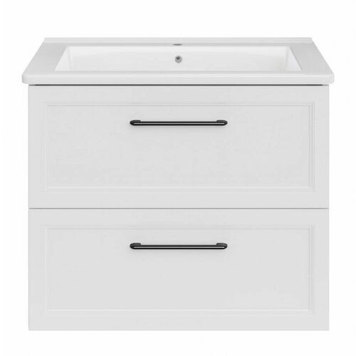 Тумба Белмонти 75 белый гармонично сочетает в себе элегантность и практичность. Подвесная тумба с парой удобных выдвижных ящиков идёт в сборе вместе с накладной прямоугольной раковиной из санфаянса. Мебель изготовлена из качественных влагостойких материалов, для корпуса и фасадов тумбы использована МДФ с плёнкой, имеющая фактурное покрытие под древесину «ясень браш софт белый». Размеры: подстолье под раковину (ш/в/г): 720x625x462 мм; керамическая раковина Kirovit Оскар 75 (ш/в/г): 765x185x475 мм. Комплектация: подстолье, комплект доводчиков, инструкция, раковина, инструкция.