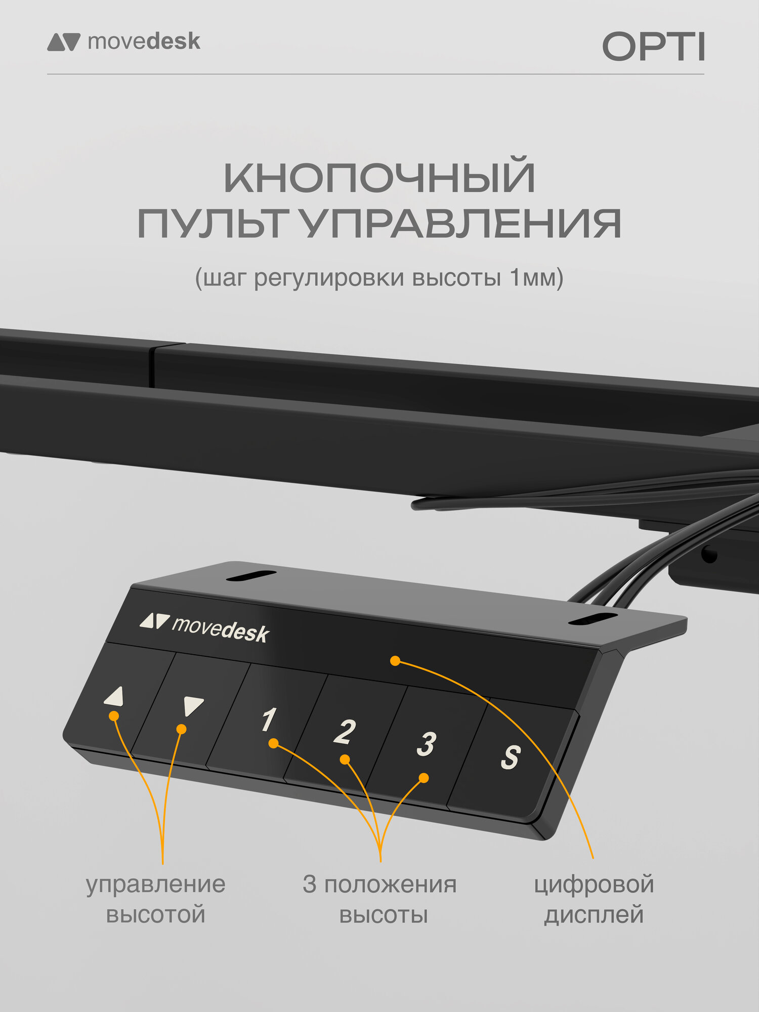 Купить Подстолье для компьютерного стола с электроприводом, рама для стола регулируемая по высоте movedesk Opti, цвет черный с доставкой по всей России.