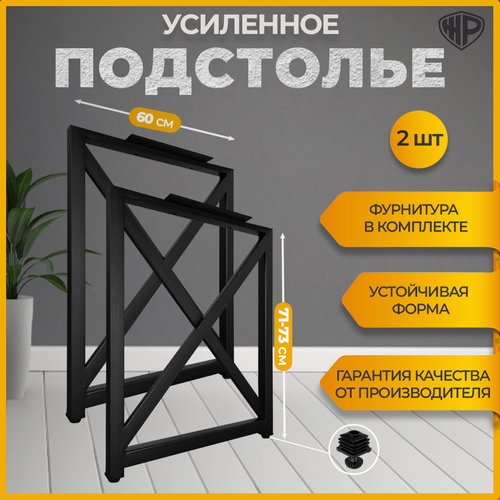 Купить Подстолье лофт Х 60×71-73 см черное, Ножки для стола металлические, Железное решение с доставкой по всей России.