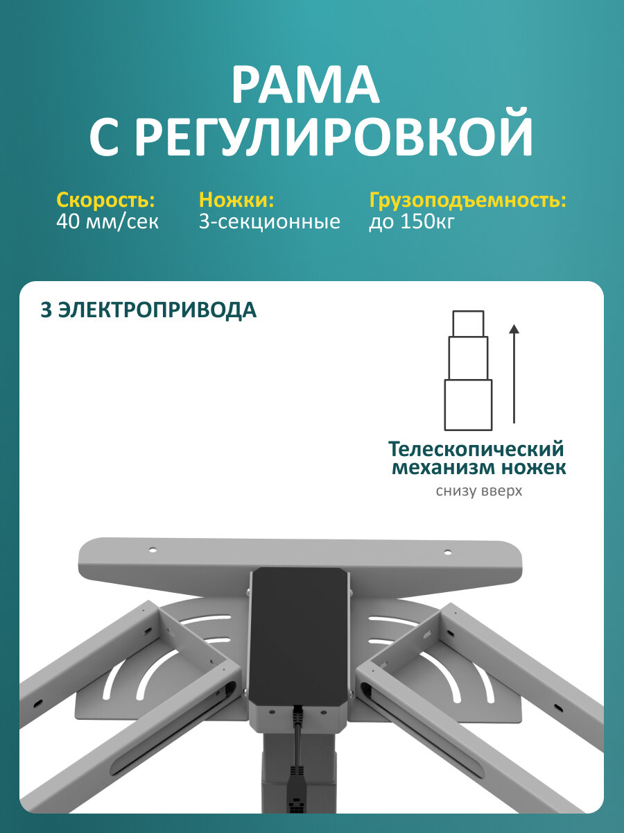 Подстолье с регулировкой высоты LuхAlto, стол письменный офисный 3A3 TRI-MASTER, 3 мотора, 3 ножки, модуль управления (4 настройки памяти), USB+, TYPEC, серый: сравнение цен, характеристики, фото, актуальное наличие и цены.