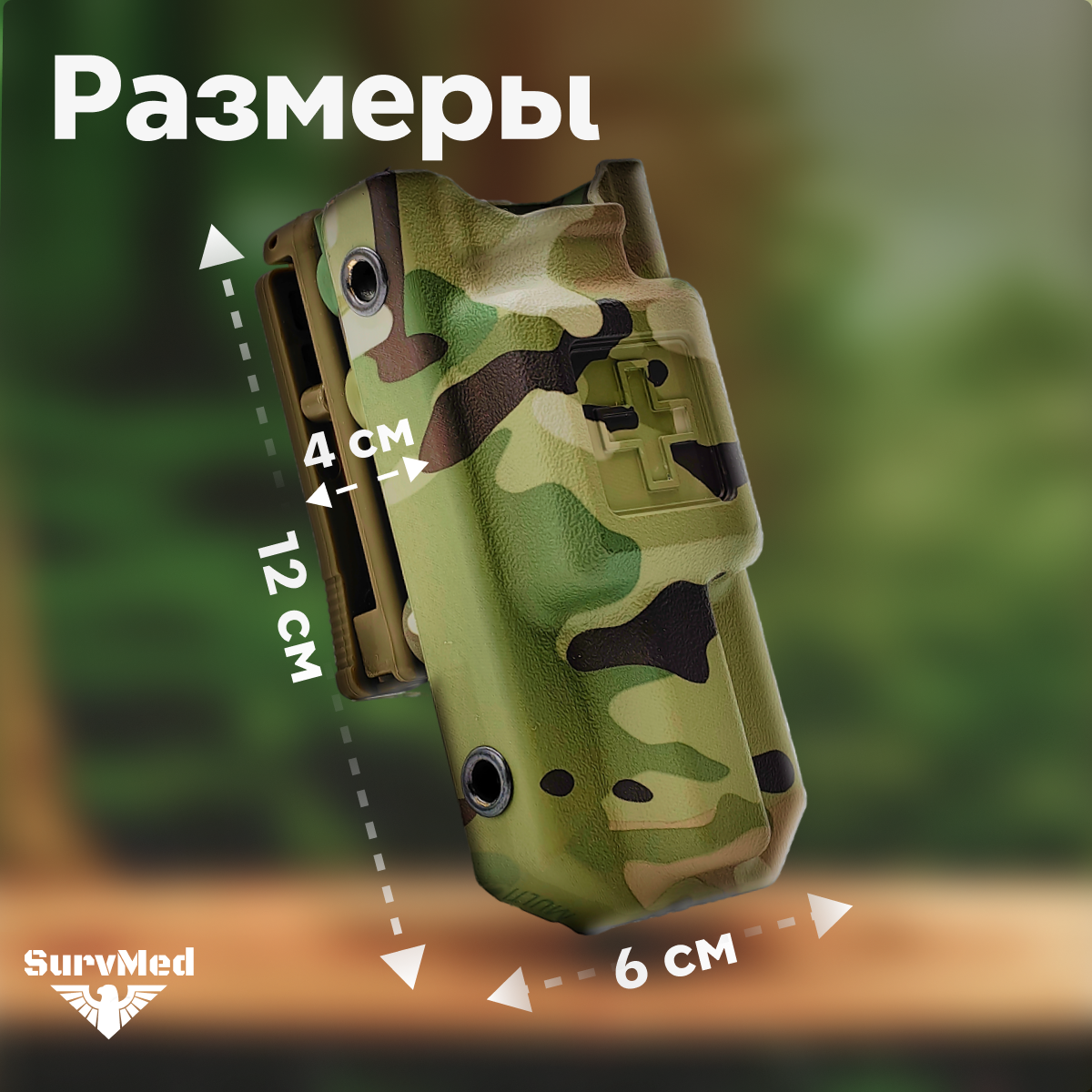 - Габариты с креплением на molle: 12х5х6