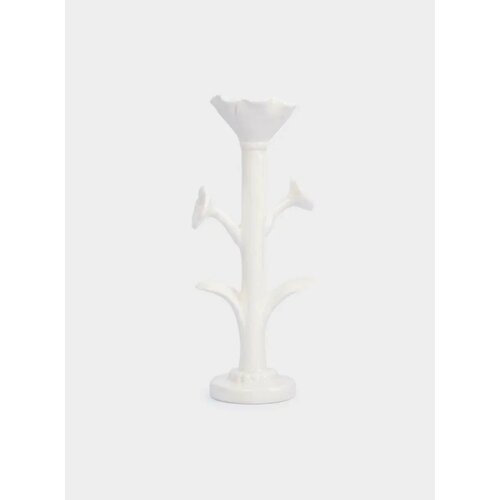 Купить Подсвечник, 20 см, для тонкой свечи, на ножке, керамика, молочный, Цветок с доставкой по всей России.
