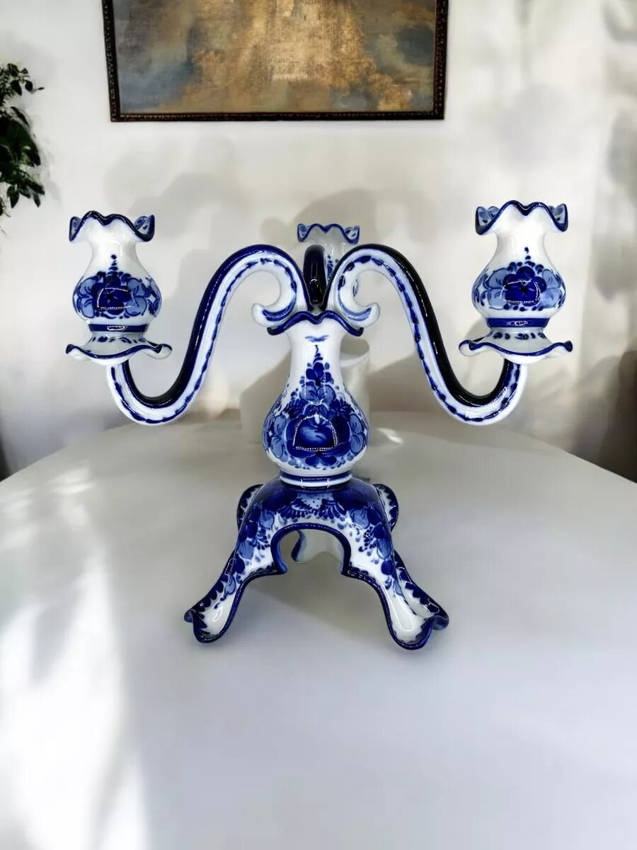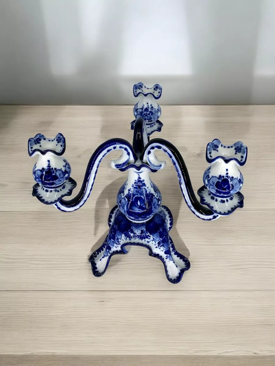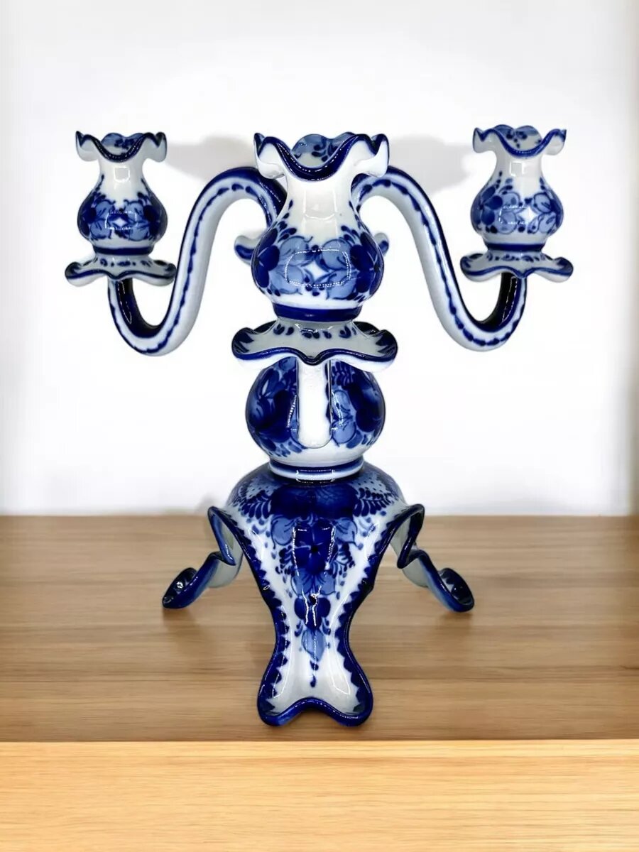 Погрузитесь в атмосферу уюта и изысканности с нашим уникальным трёхрожковым подсвечником, выполненным в традиционном стиле Гжель. Этот великолепный предмет декора из белого фарфора с яркой синей ручной росписью станет настоящим украшением вашего интерьера. Высококачественный фарфор, который гарантирует долговечность и сохранность цвета.