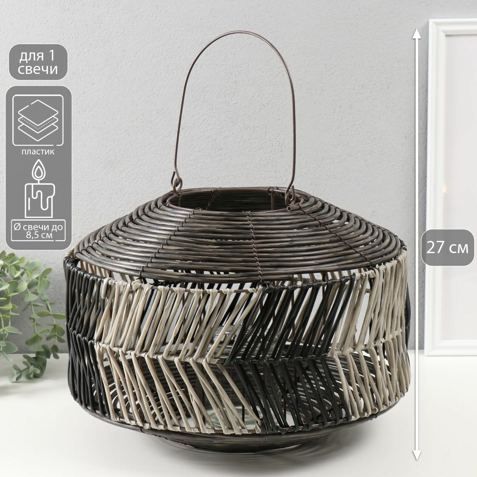 Купить Подсвечник-фонарь на 1 свечу Лист из лозы , пластик, чёрно-белый, 15 38 27 см с доставкой по всей России.