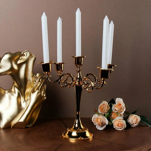 Купить Подсвечник «Канделябр», металлический, настольный, 25х25 см, 5 рожков, золотистый с доставкой по всей России. Подсвечник «Канделябр», металлический, настольный, 25х25 см, 5 рожков, золотистый: сравнение цен, характеристики, фото, актуальное наличие и цены.