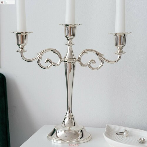 Подсвечник Канделябр на 3 свечи: элегантный и изысканный декор Подсвечник Канделябр на 3 свечи представляет собой уникальное декоративное изделие, которое станет прекрасным дополнением к любому интерьеру, придавая ему особый шарм и изысканность. Выполненный в винтажном стиле, подсвечник выполнен из металла и имеет серебристый цвет, что придает ему особую привлекательность. Подсвечник Канделябр на 3 свечи может быть использован на кухне, в гостиной или спальне, идеально сочетаясь с другими предметами интерьера. Высота подсвечника составляет 25 см, ширина – 26 см, а диаметр – 2 см. Вес подсвечника – 460 г. Комплектация включает в себя 1 шт. подсвечника и упаковочную коробку. Подсвечник Канделябр на 3 свечи станет отличным подарком для ваших близких и друзей, а также прекрасным элементом декора, создающим атмосферу романтики и уюта.