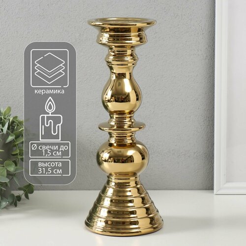 Купить Подсвечник керамика на 1 свечу Элегант , d 1.5 см, золото, 12 12 31.5 см с доставкой по всей России.
