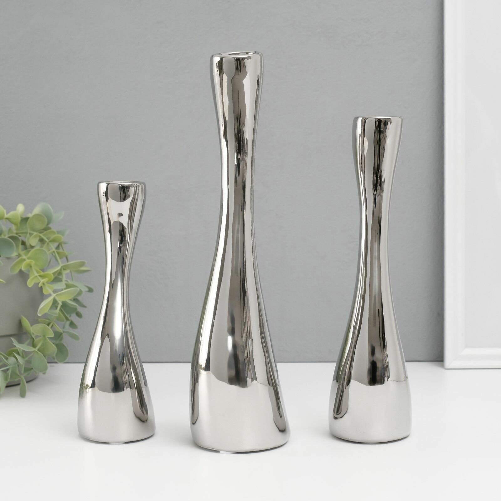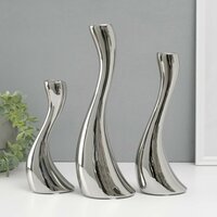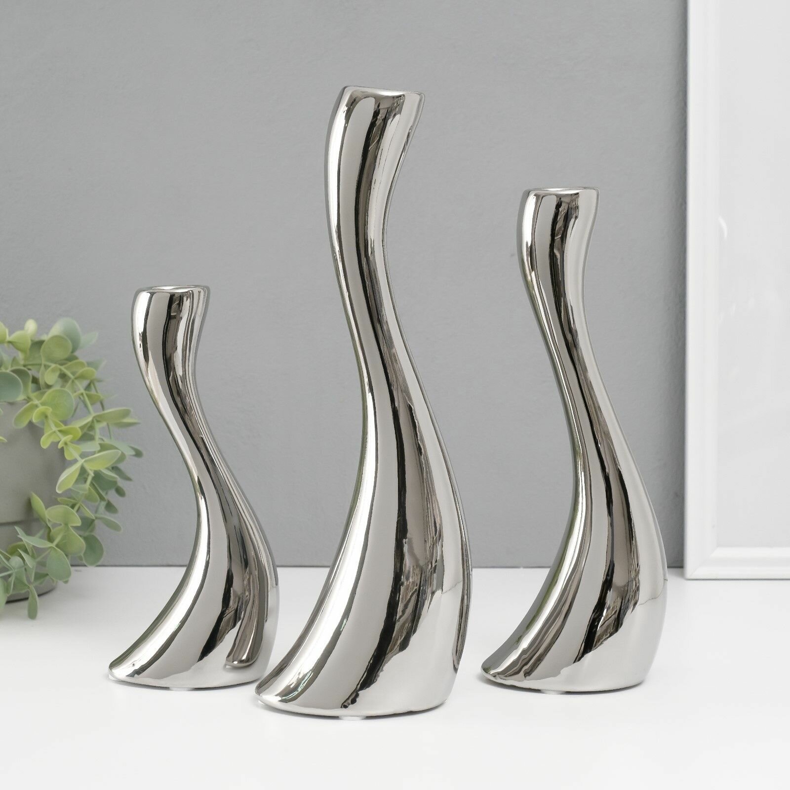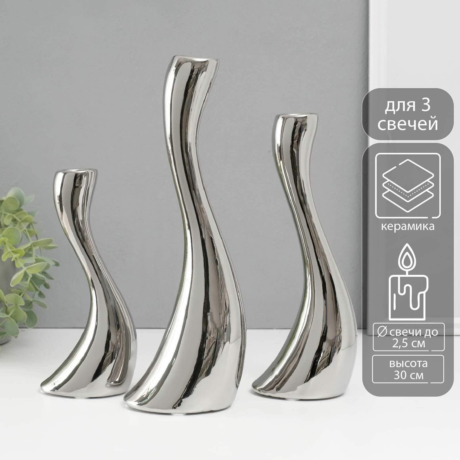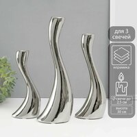 Купить Подсвечник на 1 свечу Волна , набор 3 шт, d 2.5 см, серебро, h 20; 25; 30 см с доставкой по всей России.