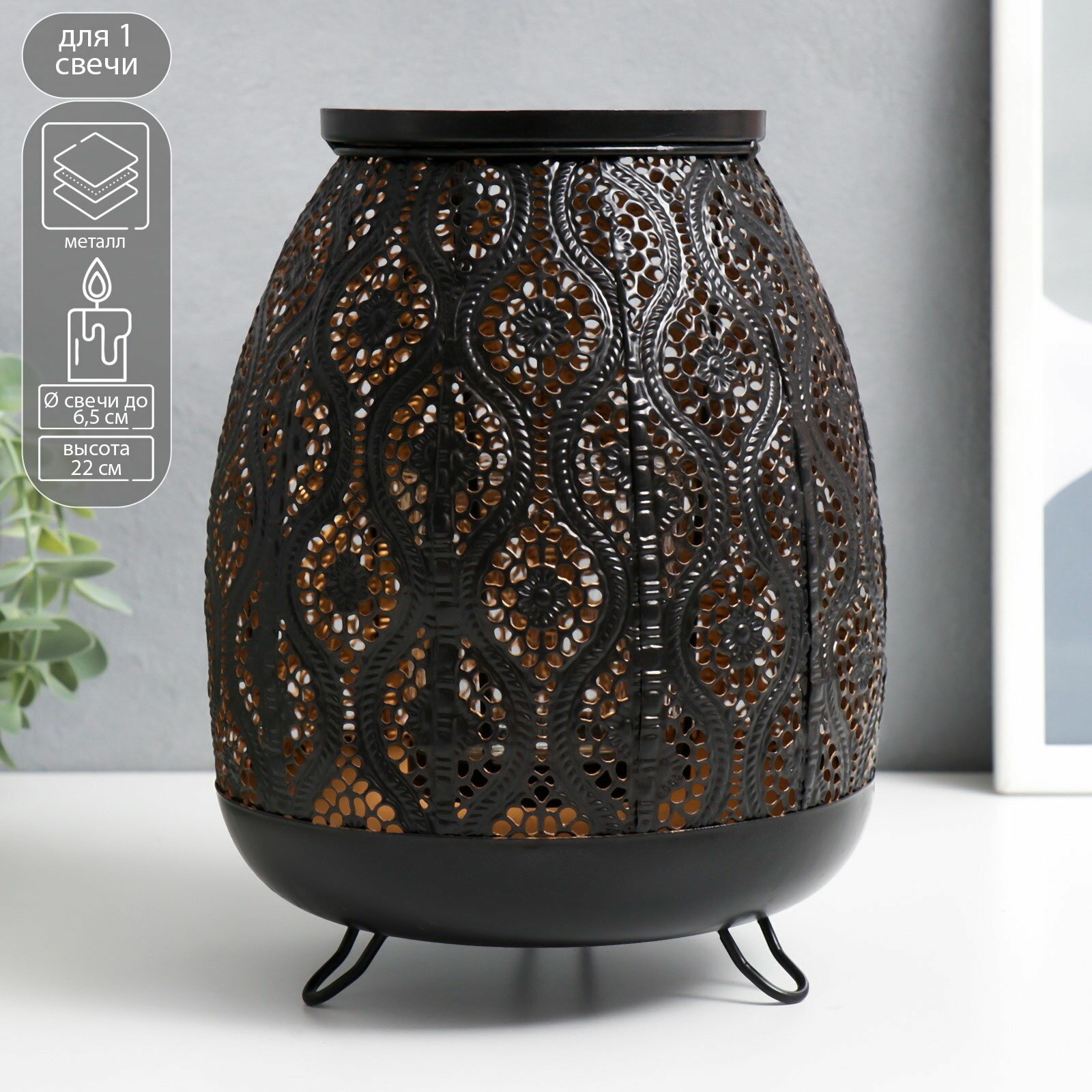 Металлический подсвечник на 1 свечу «Арабская ночь», чёрный с золотом, 22×15.5×15.5 см: сравнение цен, характеристики, фото, актуальное наличие и цены.