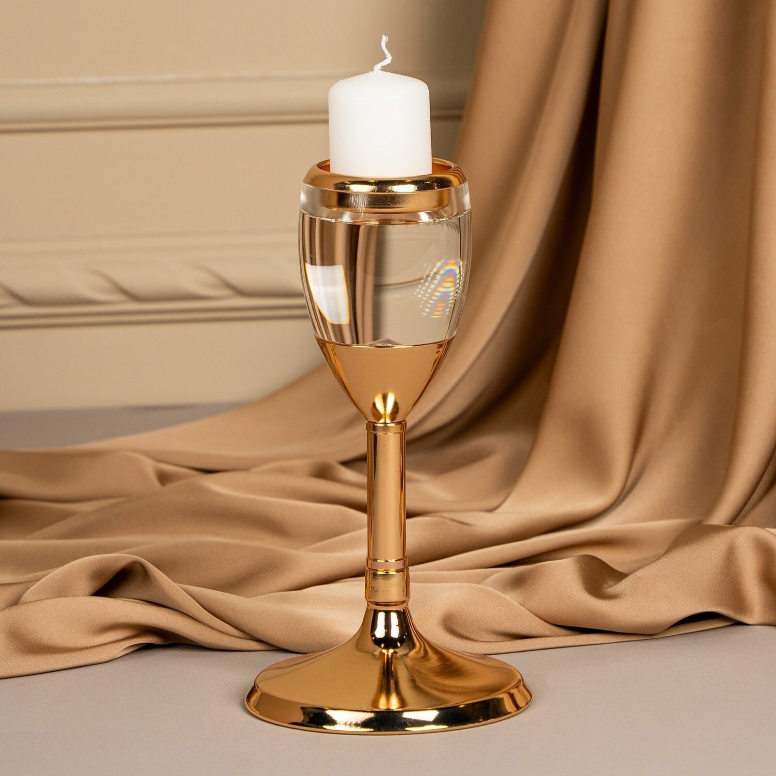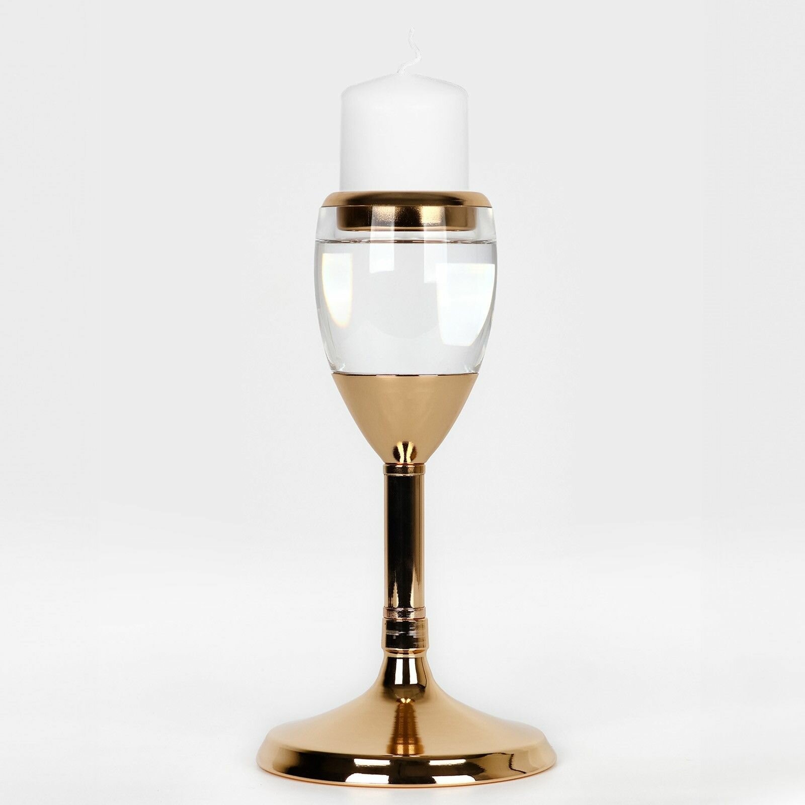Подсвечник "Безмятежность" – это элегантный и стильный элемент декора выполнен из металла золотого оттенка и прозрачного стекла. Размеры подсвечника: 11 х 11 х 21 см. выделяют его среди остальных аксессуаров интерьера. А вес брутто: 300 гр. говорит о легкости и утонченности изделия. Подсвечник "Безмятежность" отличается универсальным дизайном, что позволяет использовать его как для повседневного, так и для праздничного декора.