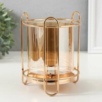 Купить Подсвечник металл, стекло на 1 свечу «Колба в оправе» d 10 см золото 12х12х16 см с доставкой по всей России.