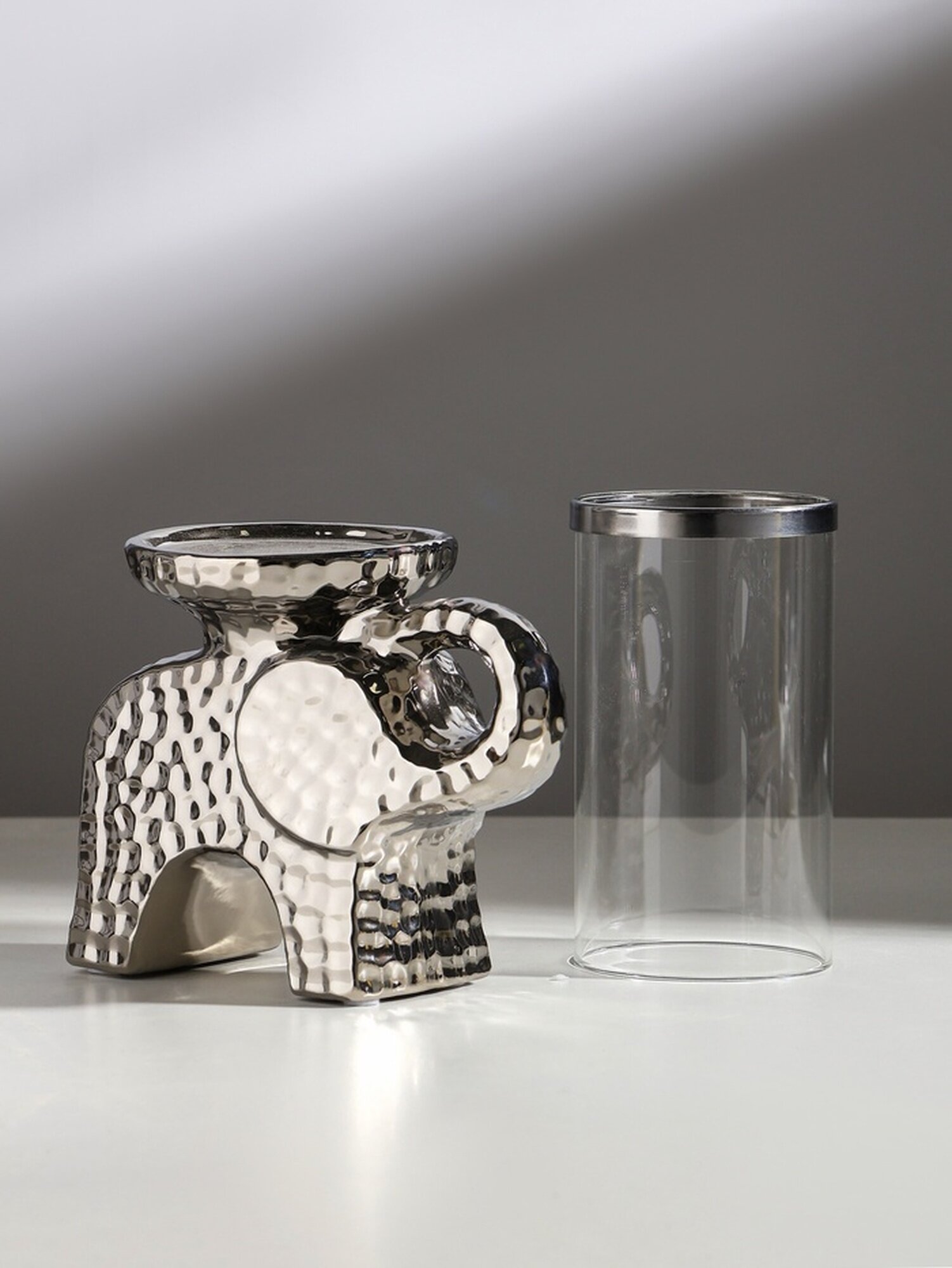 Подсвечник на 1 свечу «Слон», керамика, стекло, d=8 см, серебро, 16×10×27 см: сравнение цен, характеристики, фото, актуальное наличие и цены.