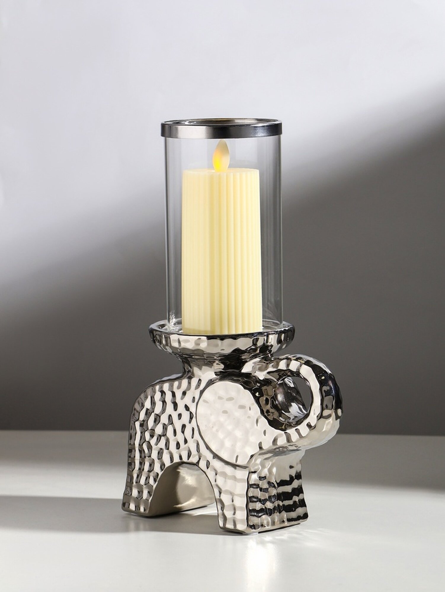 Купить Подсвечник на 1 свечу «Слон», керамика, стекло, d=8 см, серебро, 16×10×27 см с доставкой по всей России.
