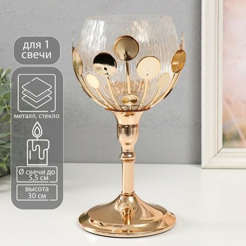 Подсвечник металл, стекло на 1 свечу "Камилла" d=9 см золото 12х12х29 см