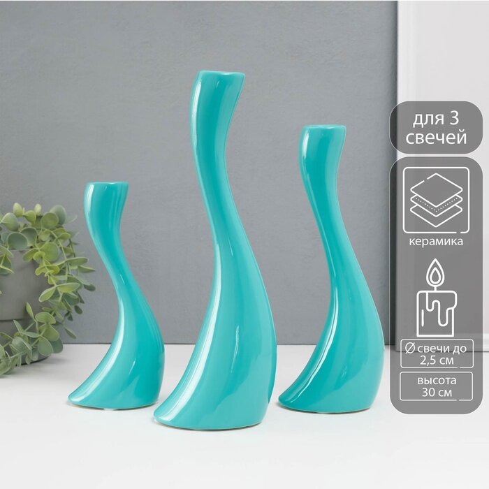 Подсвечник на 1 свечу «Волна», набор 3 шт, d=2.5 см, бирюза, h=20; 25; 30 см: сравнение цен, характеристики, фото, актуальное наличие и цены.