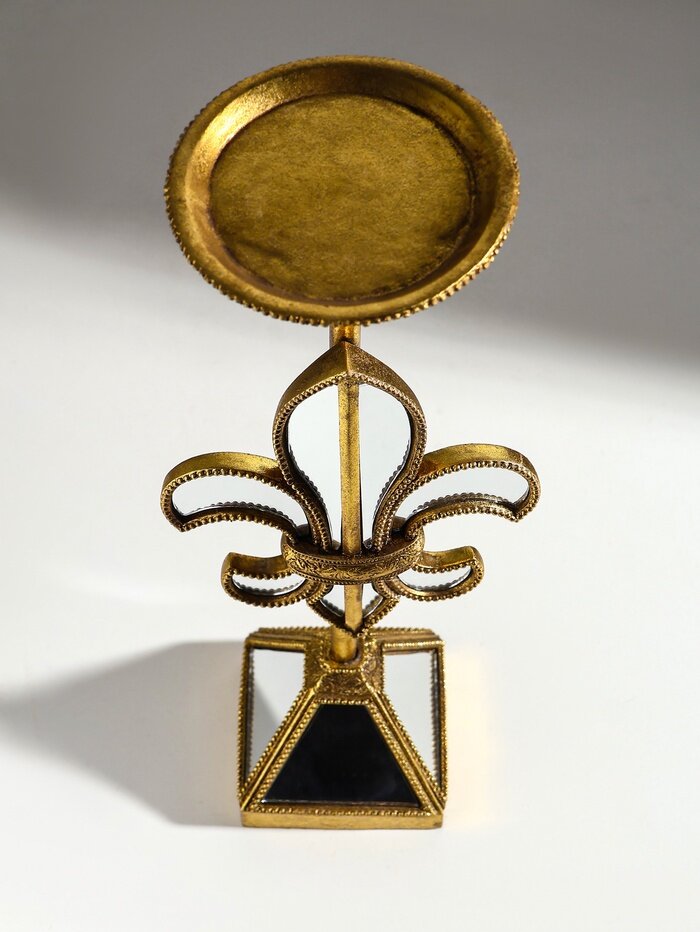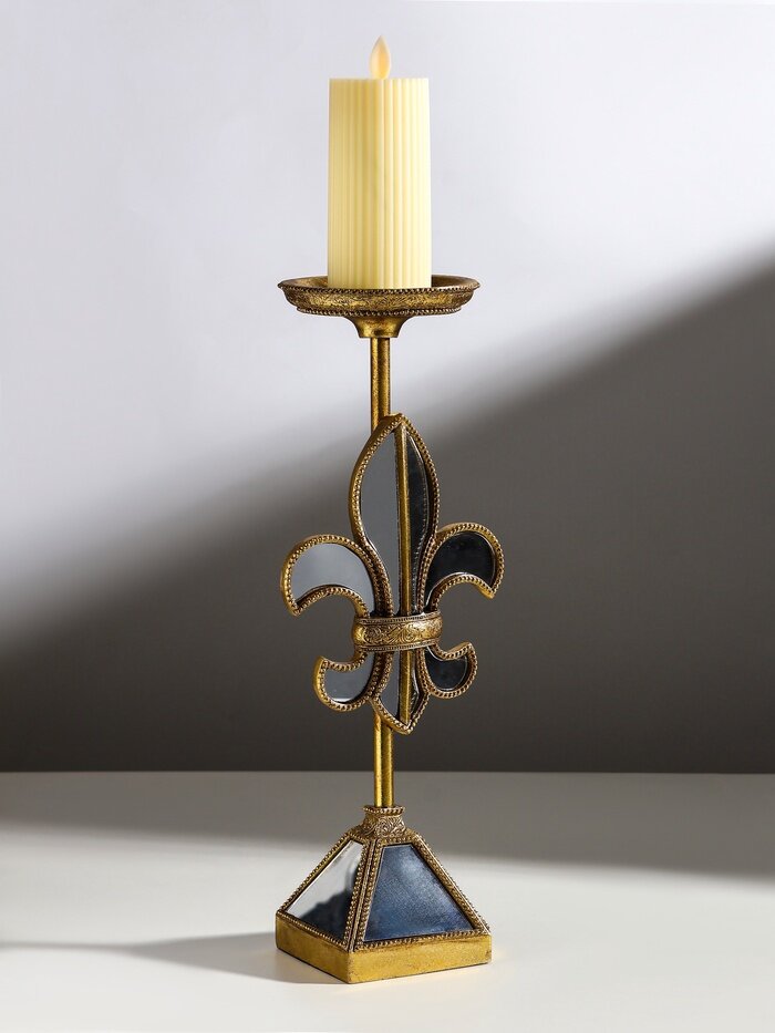 -  Элегантный дизайн: форма зеркальной геральдической лилии и разноцветный оттенок придают подсвечнику уникальный и стильный вид.