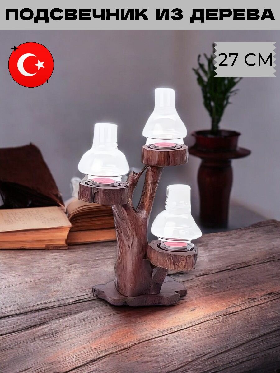 Настольный подсвечник на 3 свечи выполнен из дерева Тик. С помощью такого подсвечника можно создать романтическую атмосферу и эффектно преобразить интерьер дома, прекрасно подойдет для интерьера кухни, гостиной или спальни, поможет гармонично расставить акценты в помещении. Подсвечник станет отличным подарком вашим близким, родственникам, друзьям или знакомым, ведь вы дарите не просто красивый аксессуар, а нечто большее - душевную теплоту и уют.