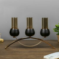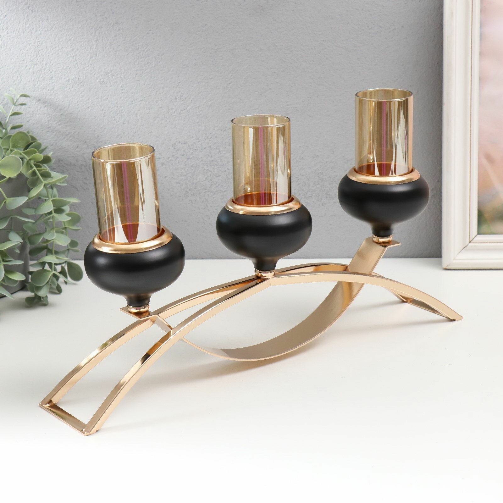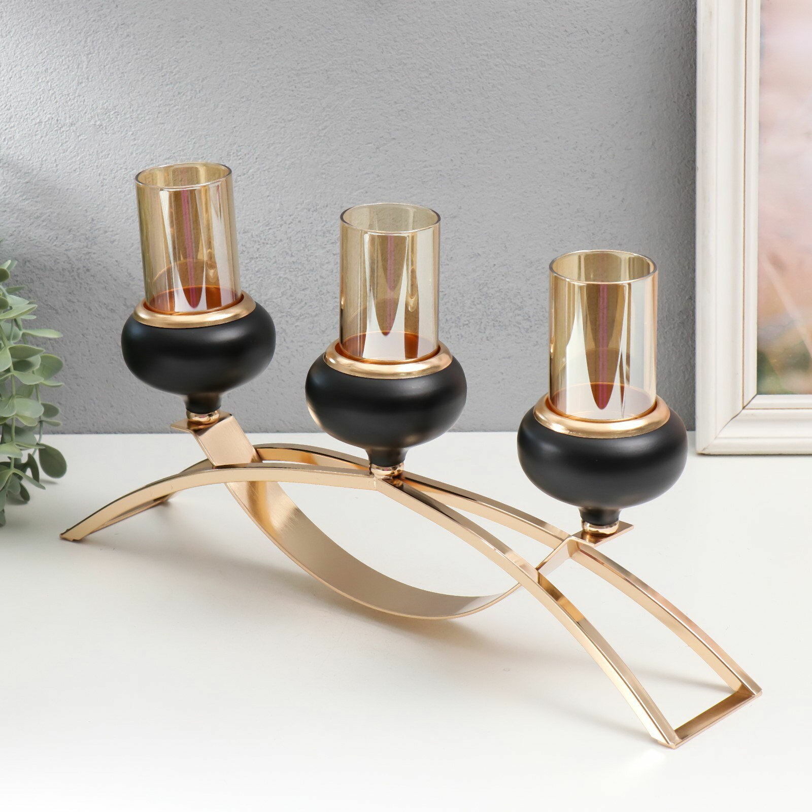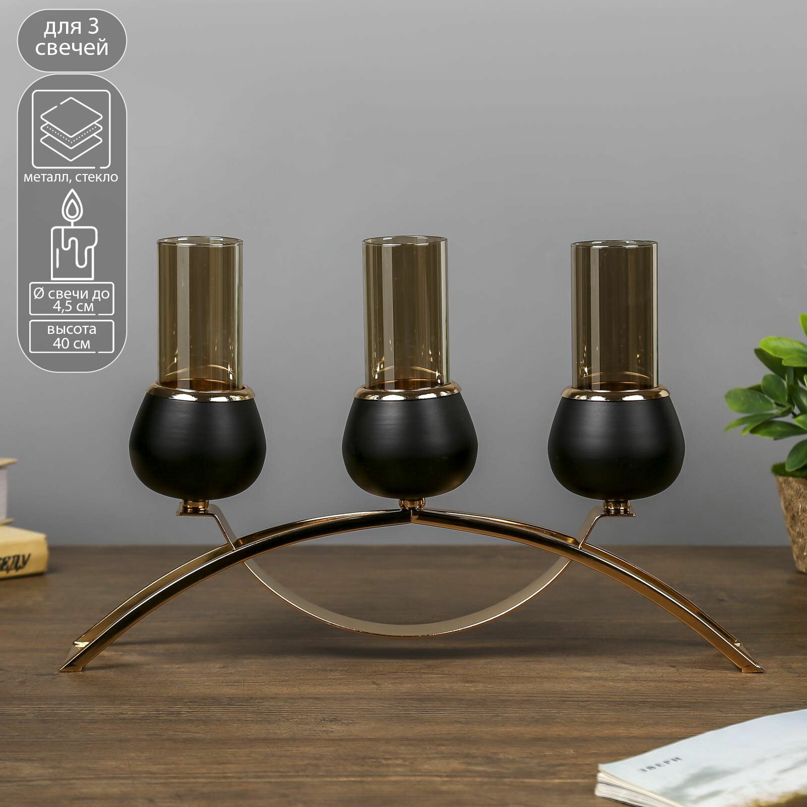 Купить Подсвечник на 3 свечи «Тёмный рыцарь», металл, стекло, чёрный матовый с золотом, 40x25x12 см с доставкой по всей России.