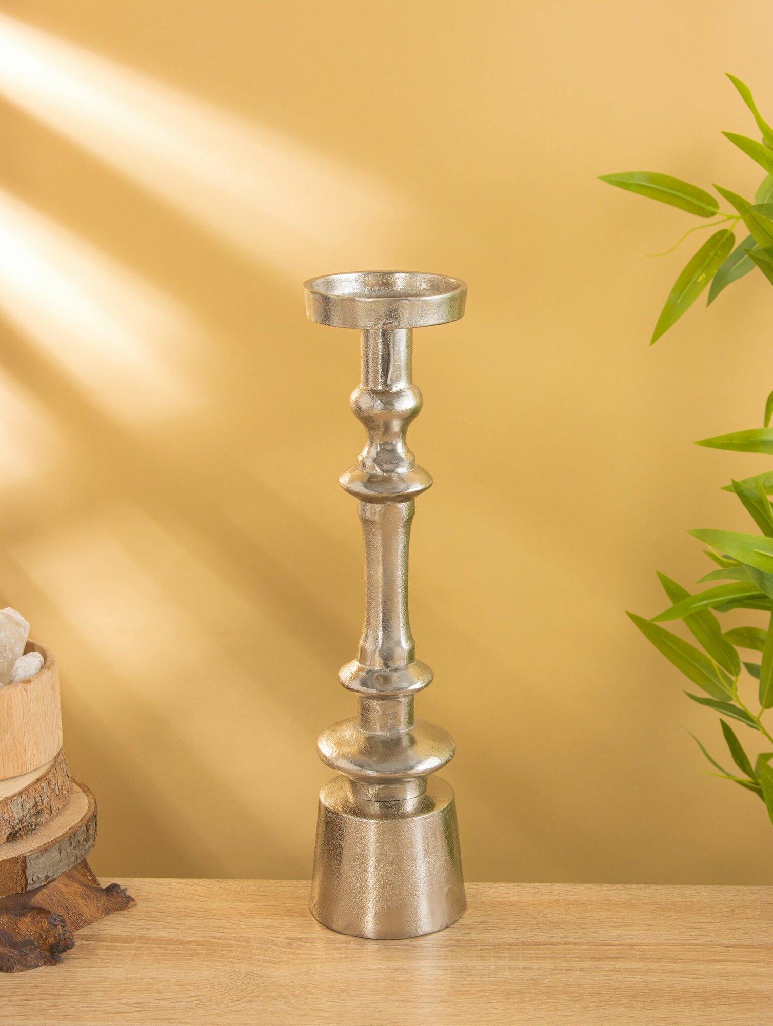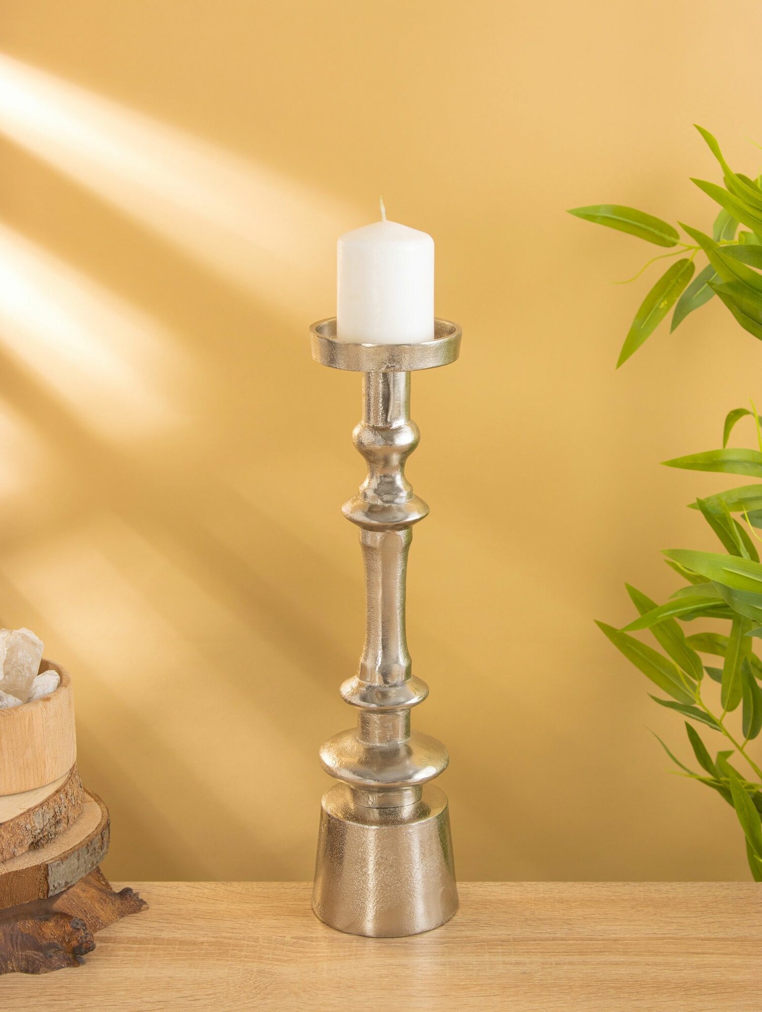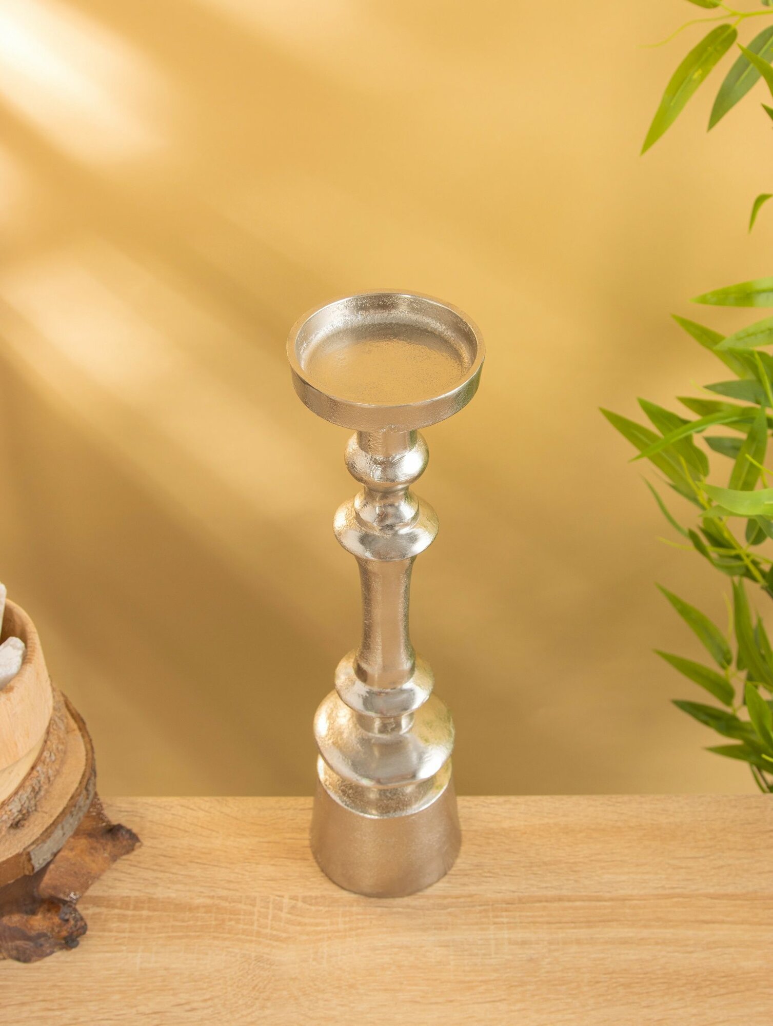 Серебристый цвет подсвечника придает ему элегантный и современный вид, который будет гармонично смотреться в любом интерьере.