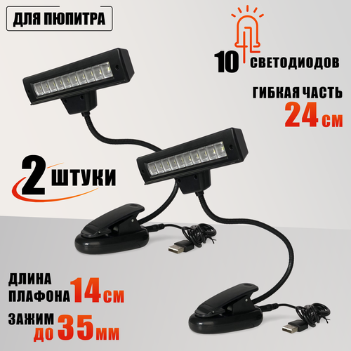 - Подсветка для пюпитра 10LED на прищепке с кабелем USB - 2 шт.