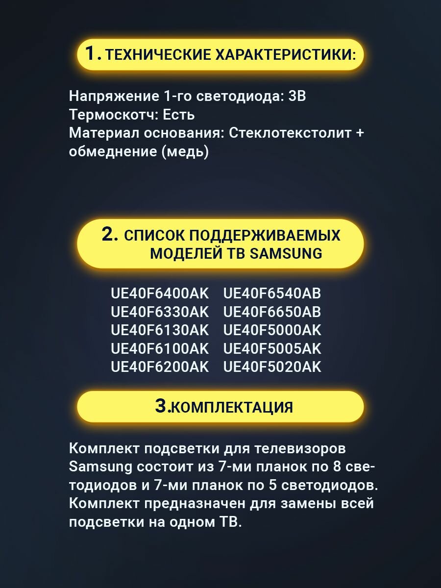 Данный комплект подсветки устанавливается в ТВ Samsung 40 диагонали серия UE40F