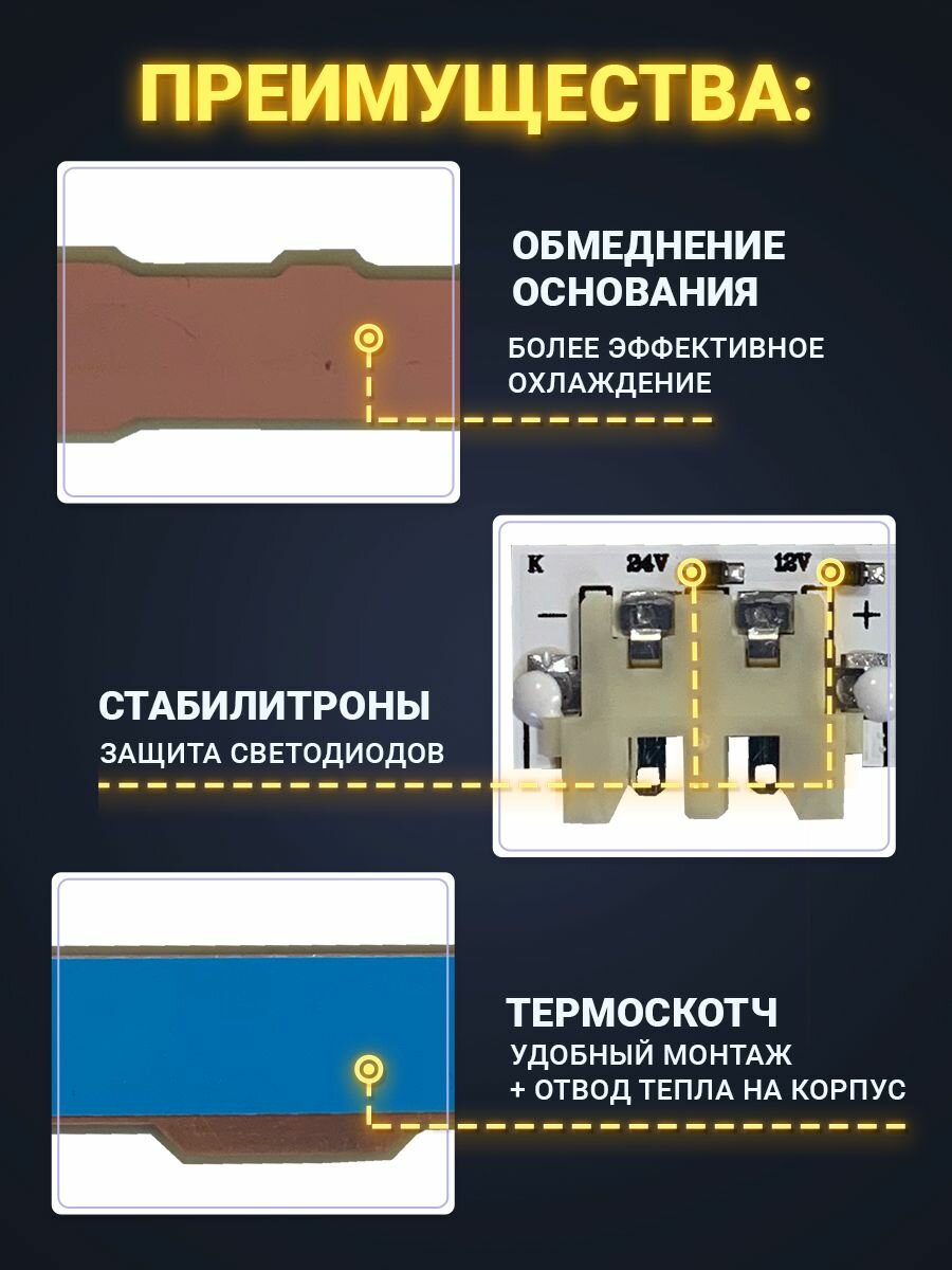 Обратите внимание: Основание - Текстолит+медь (это большой плюс) т. к. в продаже есть алюминиевые планки у которых часто встречается проблема пробоя диодов на "корпус". Это очень качественный вариант подсветки.