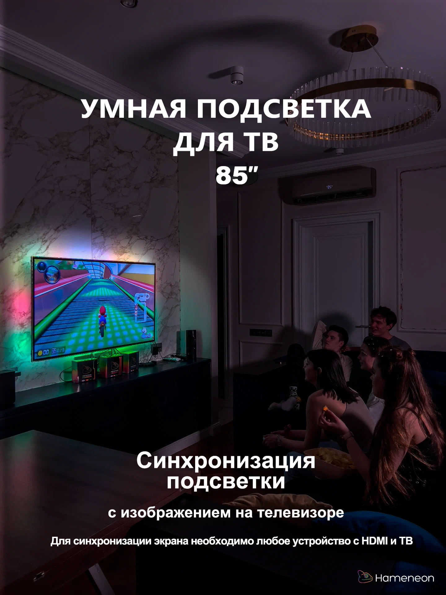 Подсветка для телевизора Светодиодная лента Smart Hameneon RGBIC Ambilight TV 85 дюймов HDMI & PC HDMI: сравнение цен, характеристики, фото, актуальное наличие и цены.