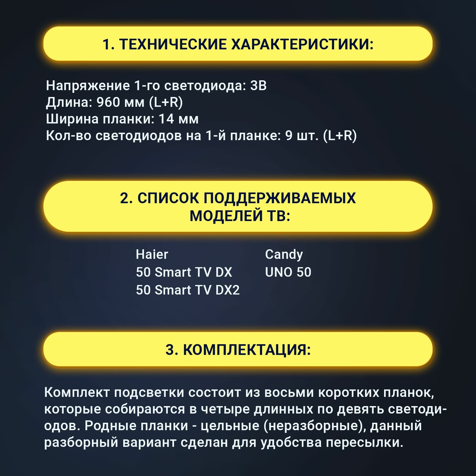 Подсветка для ТВ 50 Smart TV DX / Haier 50 Smart TV DX2 / Candy UNO 50 (комплект): сравнение цен, характеристики, фото, актуальное наличие и цены.