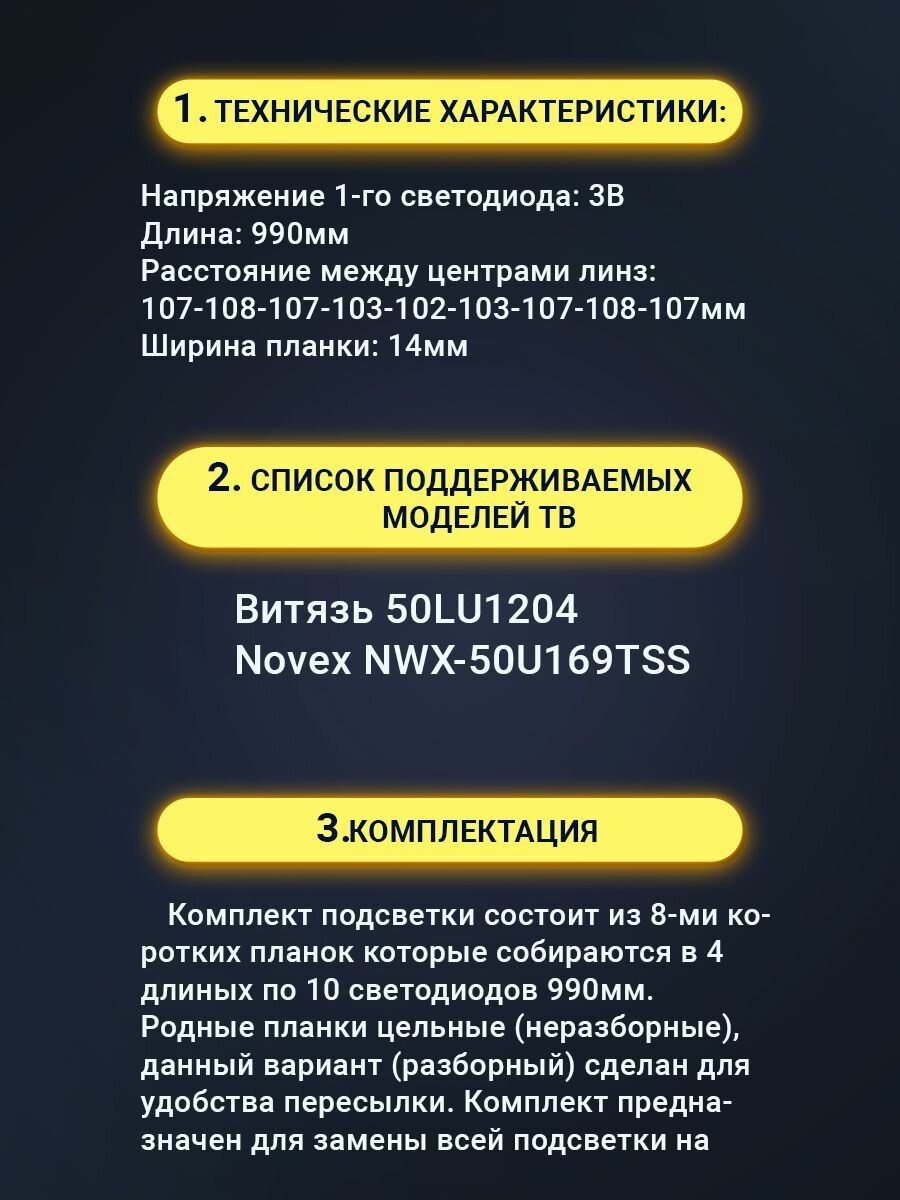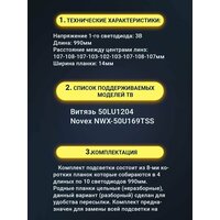 Подсветка для ТВ Витязь 50LU1204 Novex NWX-50U169TSY Hi VHIX-50U169MSY маркировка JP50A71101ER.909L R72-50D04-028-10 990mm 10led (комплект): сравнение цен, характеристики, фото, актуальное наличие и цены.