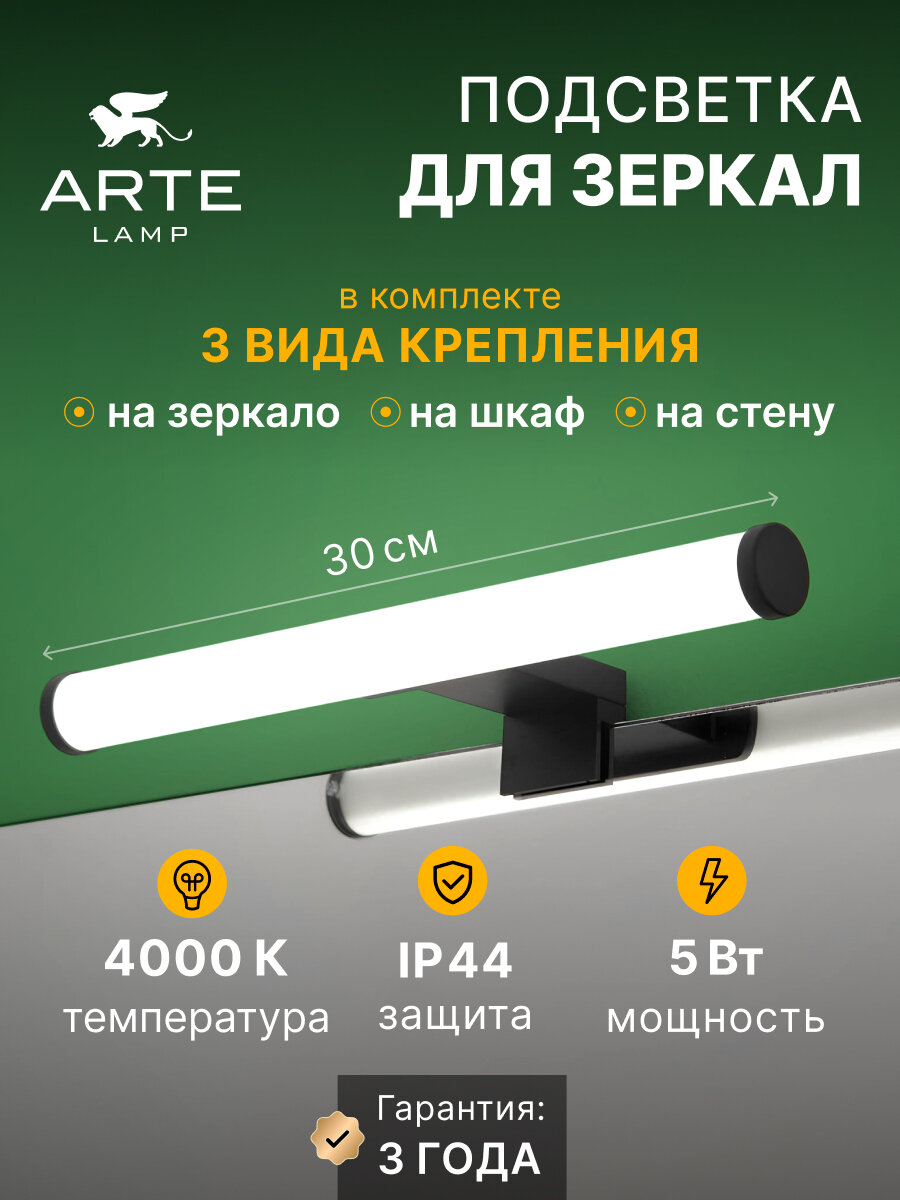 Купить Подсветка для зеркал Arte Lamp ORIZZONE A2935AP-1BK LED черный с доставкой по всей России. Подсветка для зеркал Arte Lamp ORIZZONE A2935AP-1BK LED черный: сравнение цен, характеристики, фото, актуальное наличие и цены.