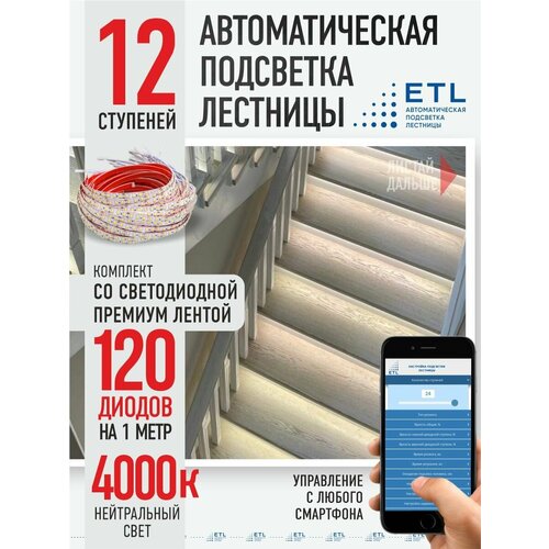 Подсветка лестниц ETL 12 ступеней со светодиодной лентой 4000K: сравнение цен, характеристики, фото, актуальное наличие и цены.