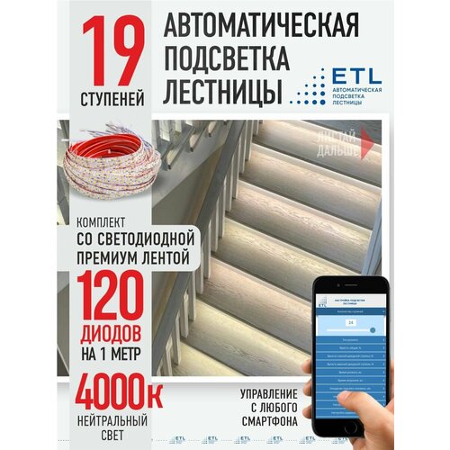 Подсветка лестниц ETL 19 ступеней со светодиодной лентой 4000K: сравнение цен, характеристики, фото, актуальное наличие и цены.