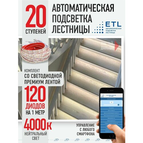 Подсветка лестниц ETL 20 ступеней со светодиодной лентой 4000K: сравнение цен, характеристики, фото, актуальное наличие и цены.