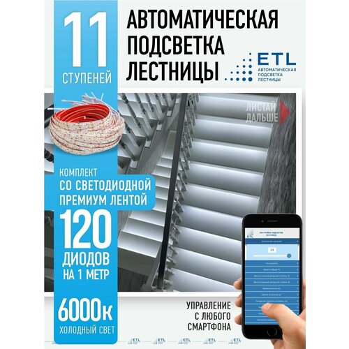 Подсветка лестниц ETL на 11 ступеней со светодиодной лентой 6000K: сравнение цен, характеристики, фото, актуальное наличие и цены.