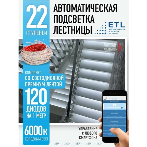 Подсветка лестниц ETL на 22 ступени со светодиодной лентой 6000K: сравнение цен, характеристики, фото, актуальное наличие и цены.