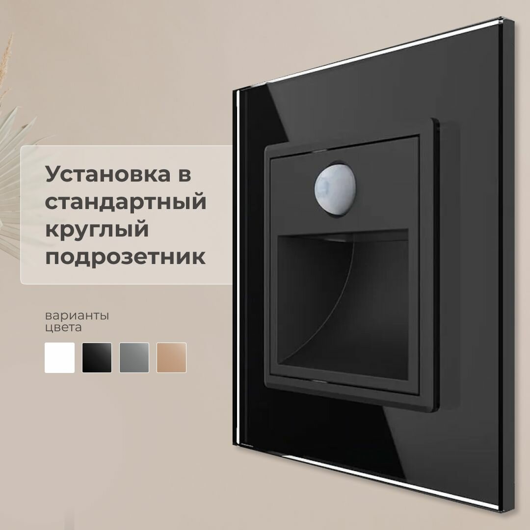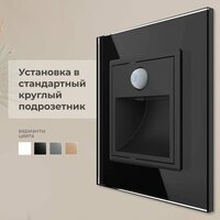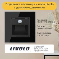 Подсветка лестницы и пола Livolo светит слабым мягким светом. Мощность светодиода 0.35Ватт. Датчик реагирует на движение и включается только в тёмное время суток. Время работы после срабатывания 40 секунд. Устанавливается в круглые подрозетники с рамками Livolo для розеток. Рамка из калёного стекла.